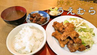 愛知県江南市 洋食ハウス うえむら(江南市)昭和レトロな雰囲気のお店の日替ランチ「唐揚げ定食」800円