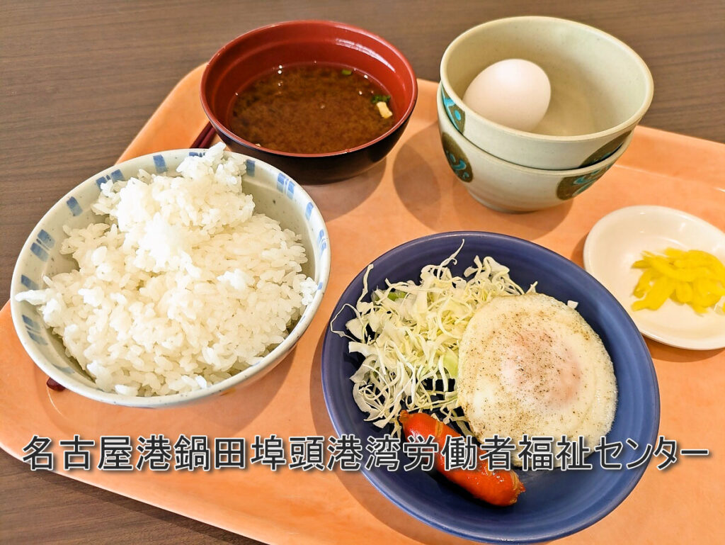 名古屋港鍋田埠頭港湾労働者福祉センター(弥富市):「朝定食」360円+「生玉子」70円