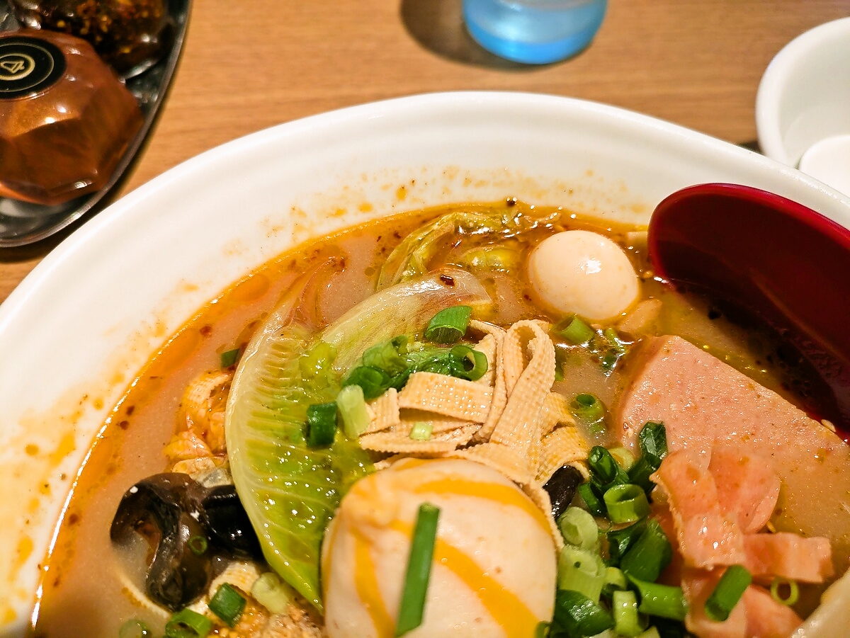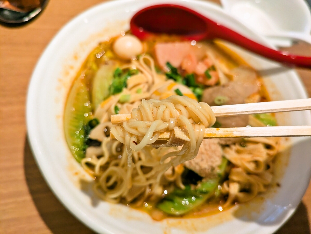 ベースのスープは鶏ガラや骨を長時間煮込んだと思われるコクがあり、ただ辛いだけじゃなく深みがある