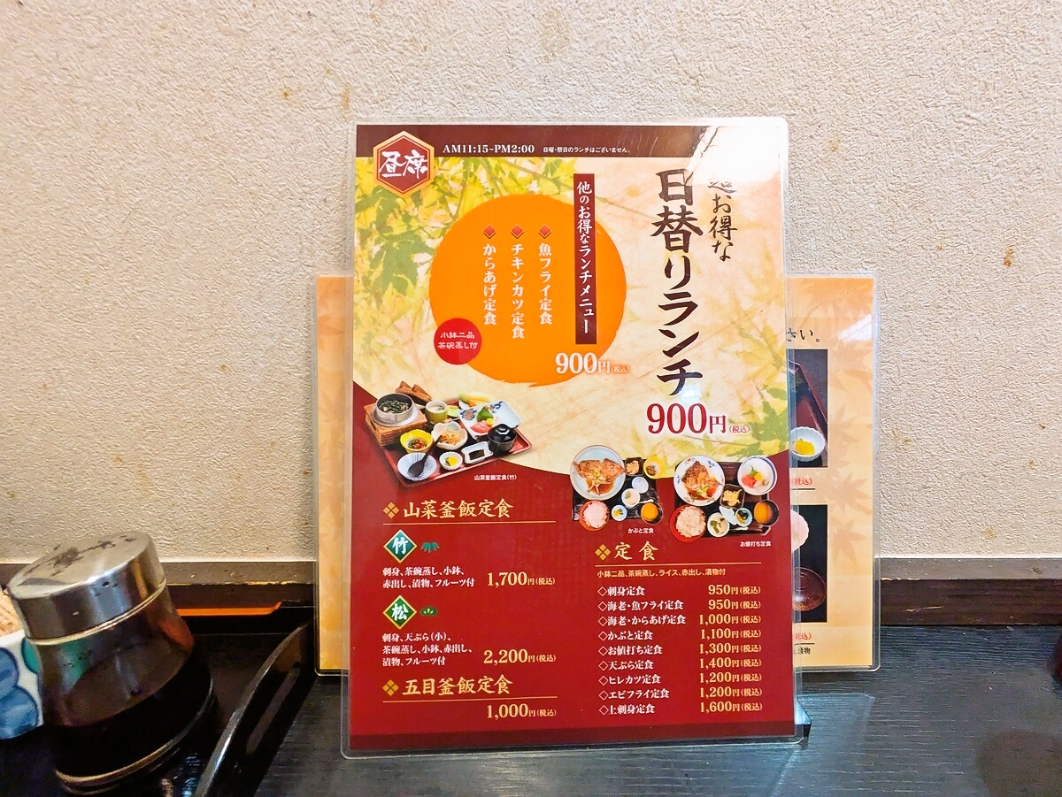 ランチは会席料理からカジュアルな定食まで幅広く揃うお店