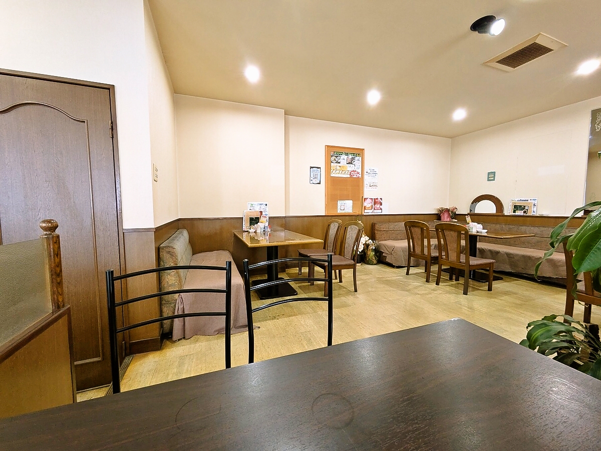 店内はレトロな雰囲気で、木目調のテーブルとゆったりした席が広がり、ひとりで訪れても居心地が良い