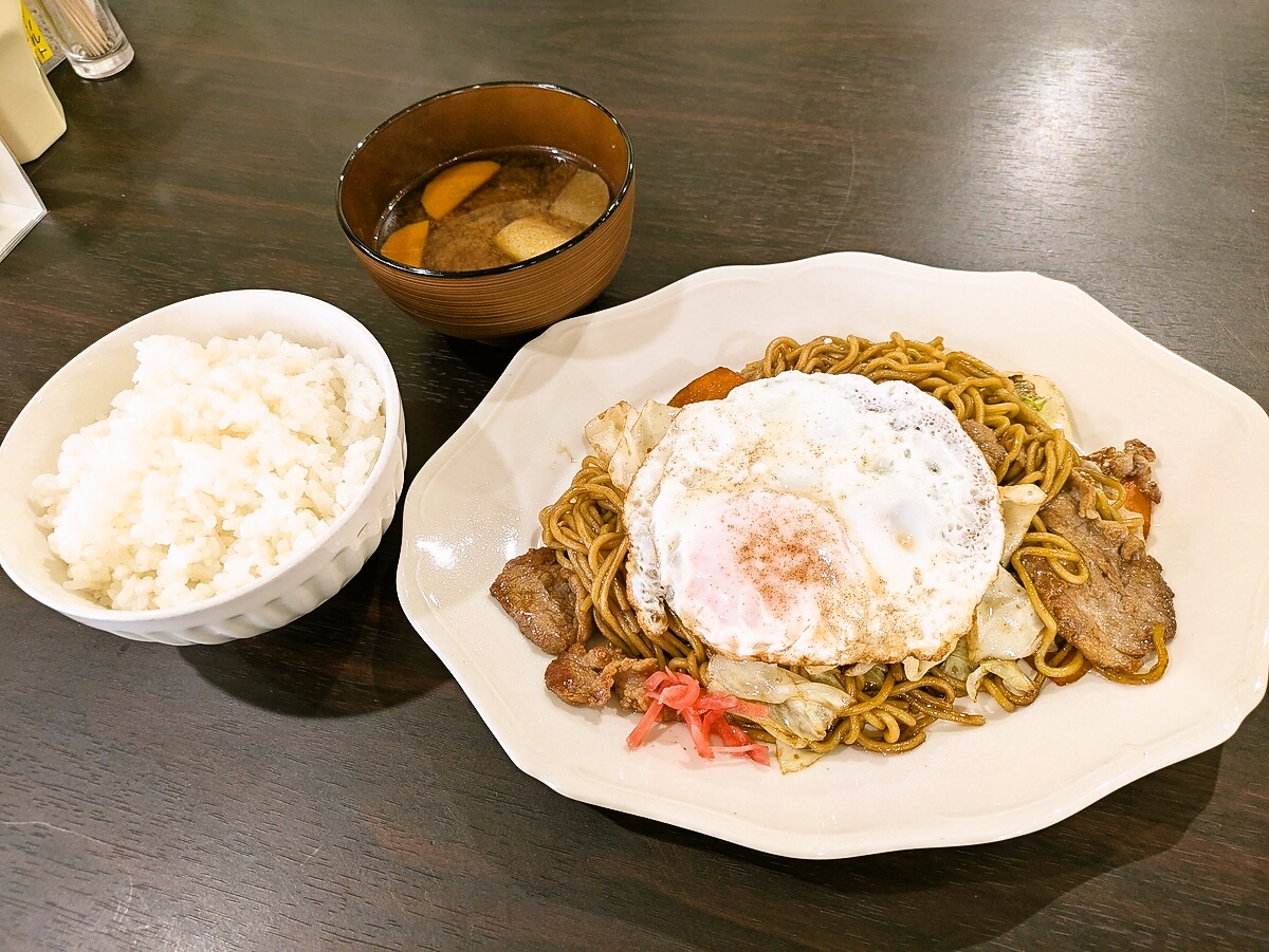 このお店の「ソース焼きそば定食」は、昔ながらの喫茶店の温かみを感じる一皿