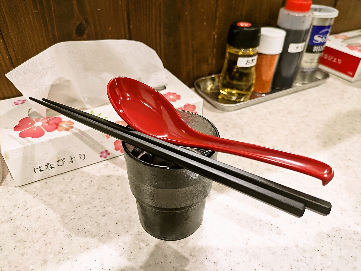 冷水と箸とレンゲをセルフ用意する