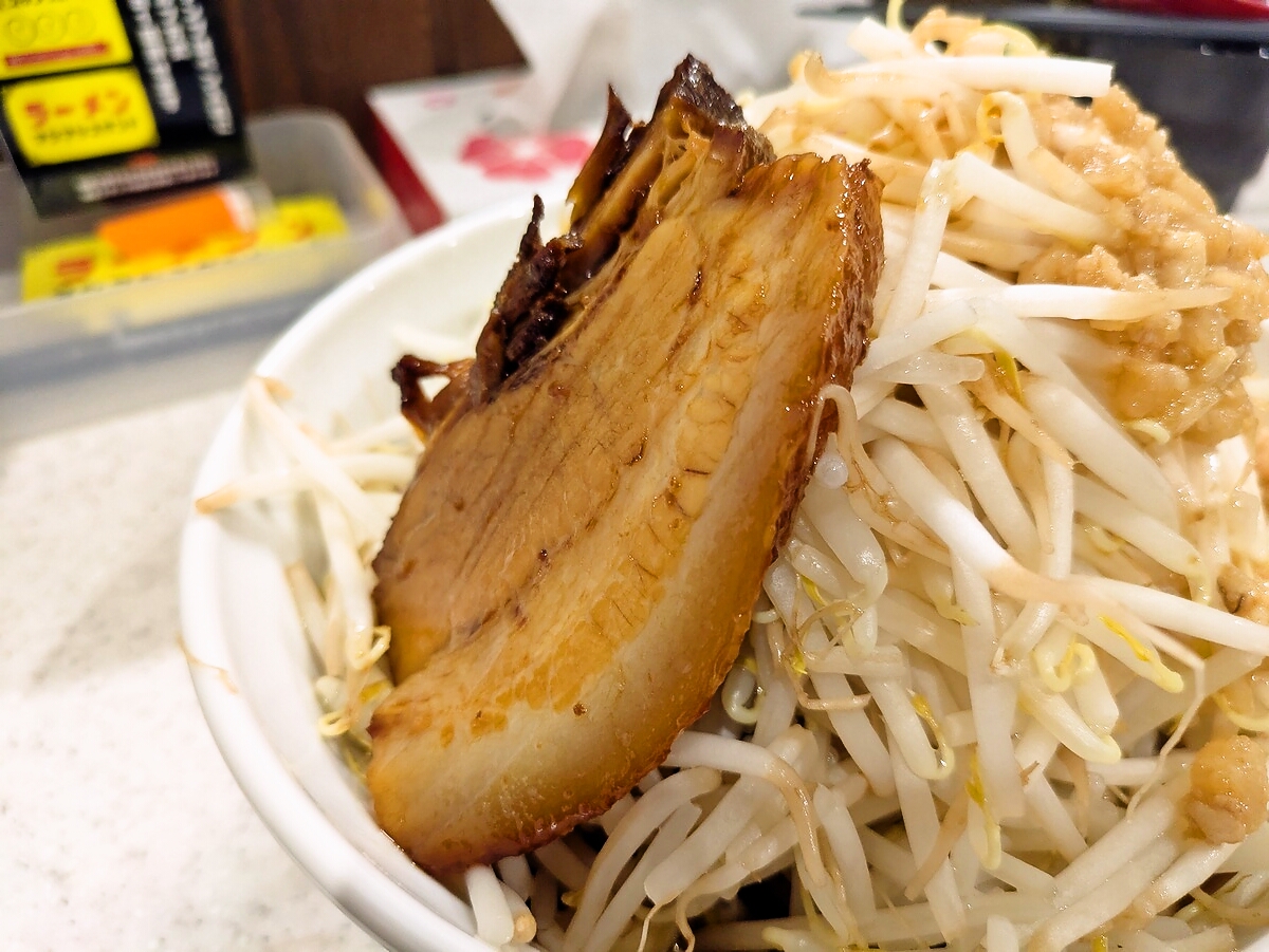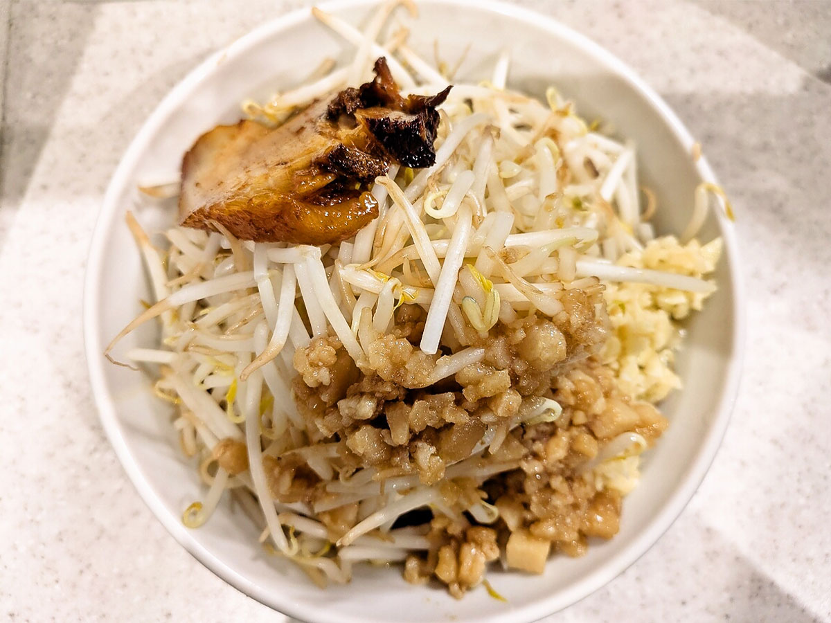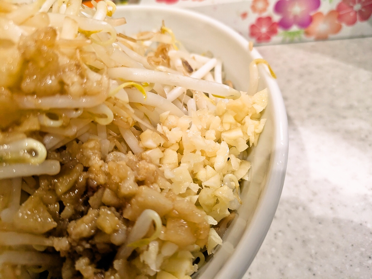 ニンニクは粗めで食感がしっかり残り、パンチが強いのが二郎系の醍醐味だ