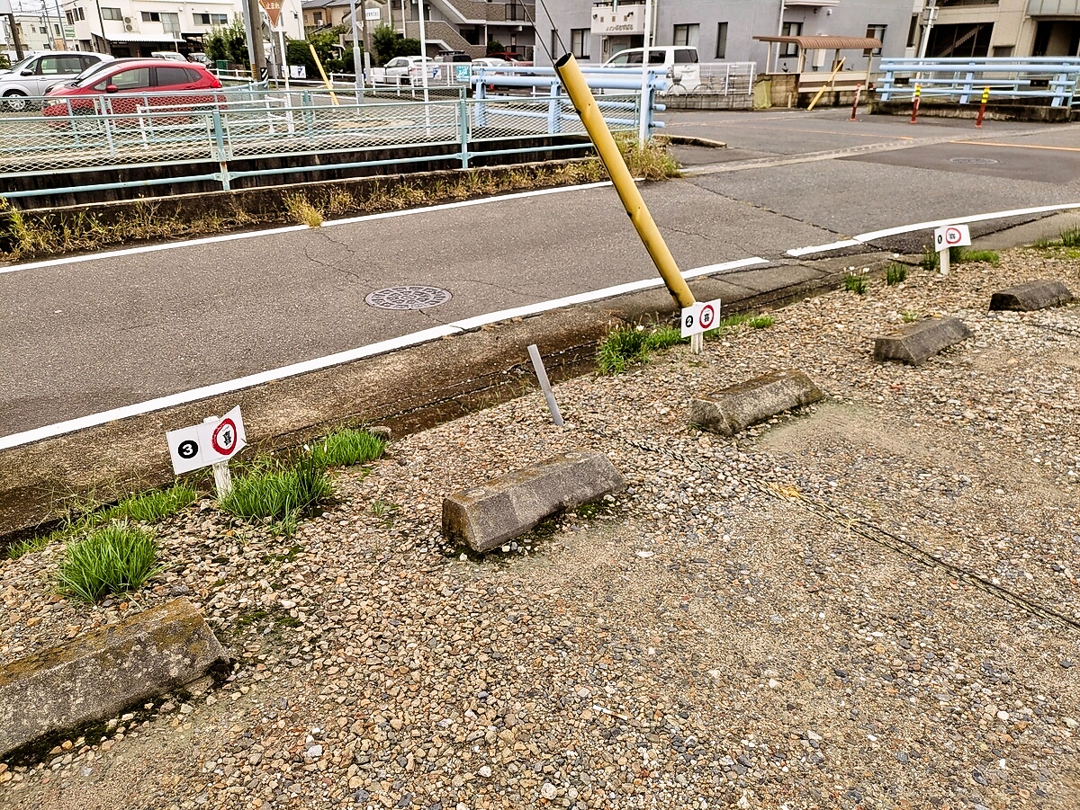 車止めにお店のロゴが入った札が立ててあるのですぐわかる