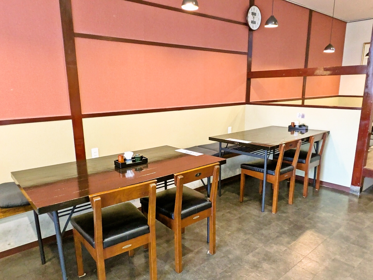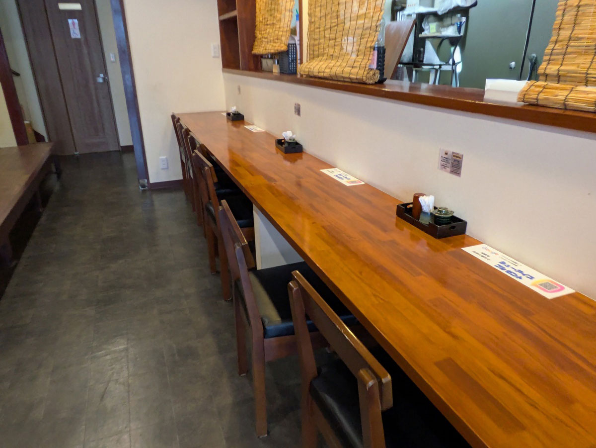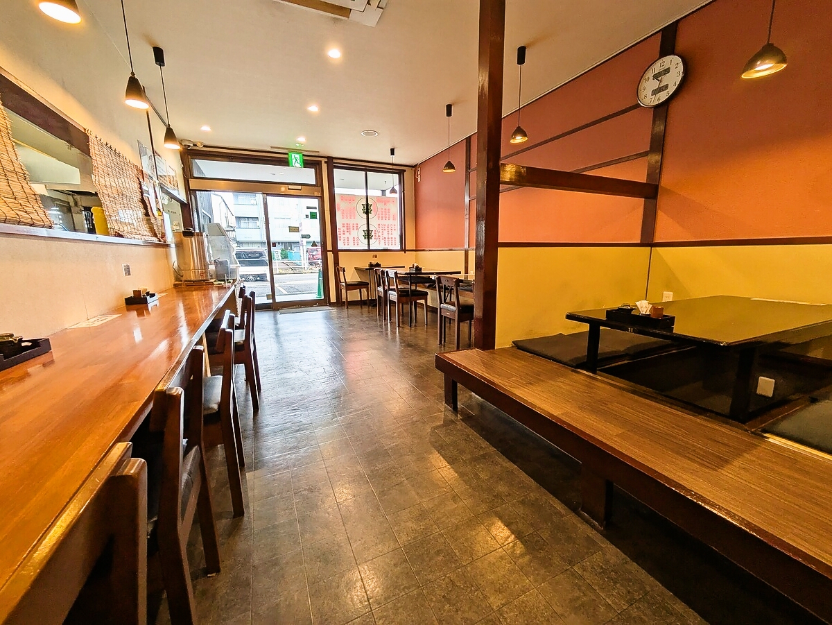 店内はシンプルで清潔感があり、カウンター席とテーブル席と座敷席が用意されている