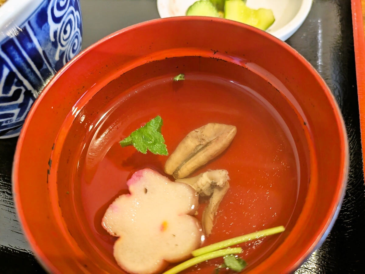 肝吸いは、うなぎの肝がゴロッと入ったお吸い物で、肝のほろ苦さと出汁の優しい味わいがマッチ