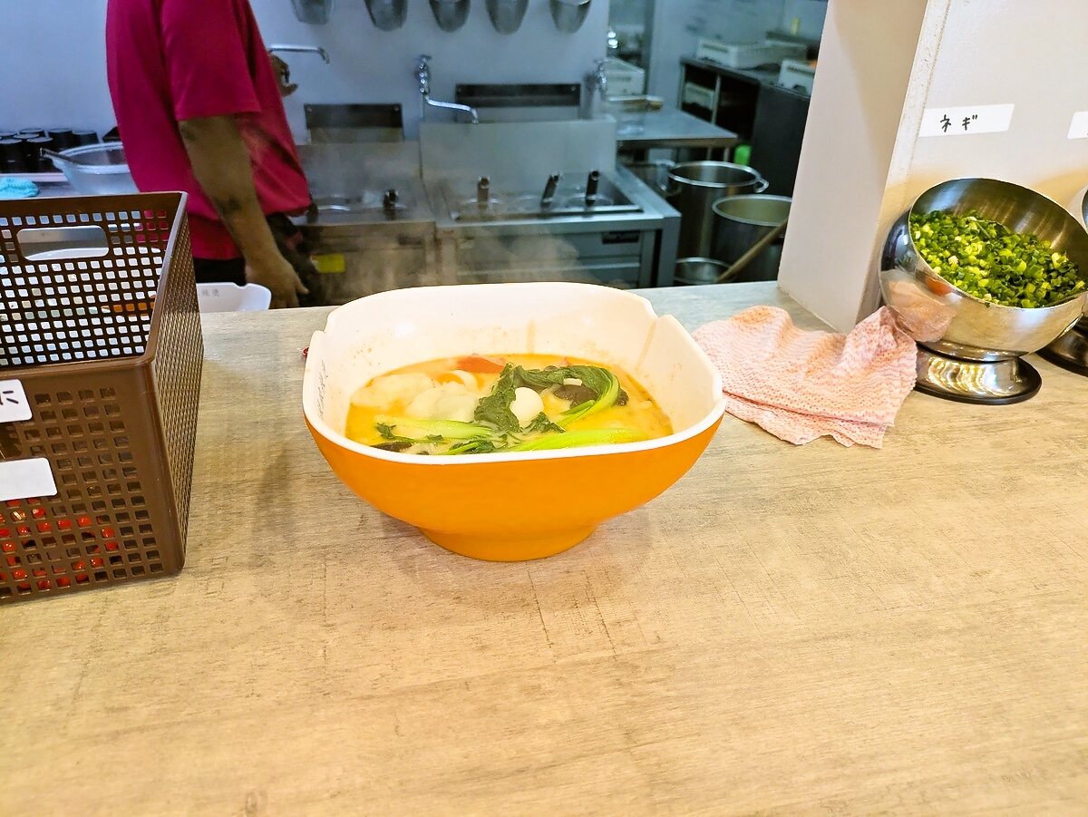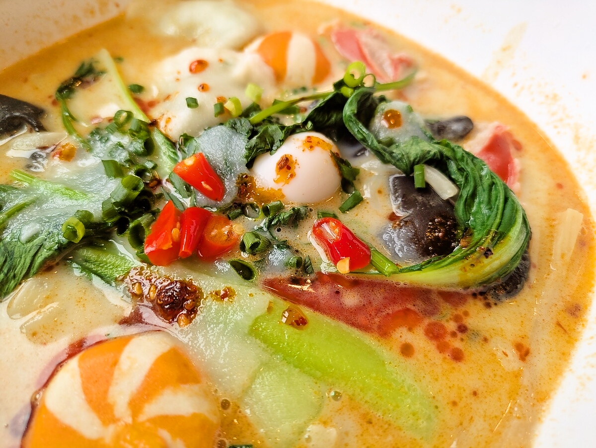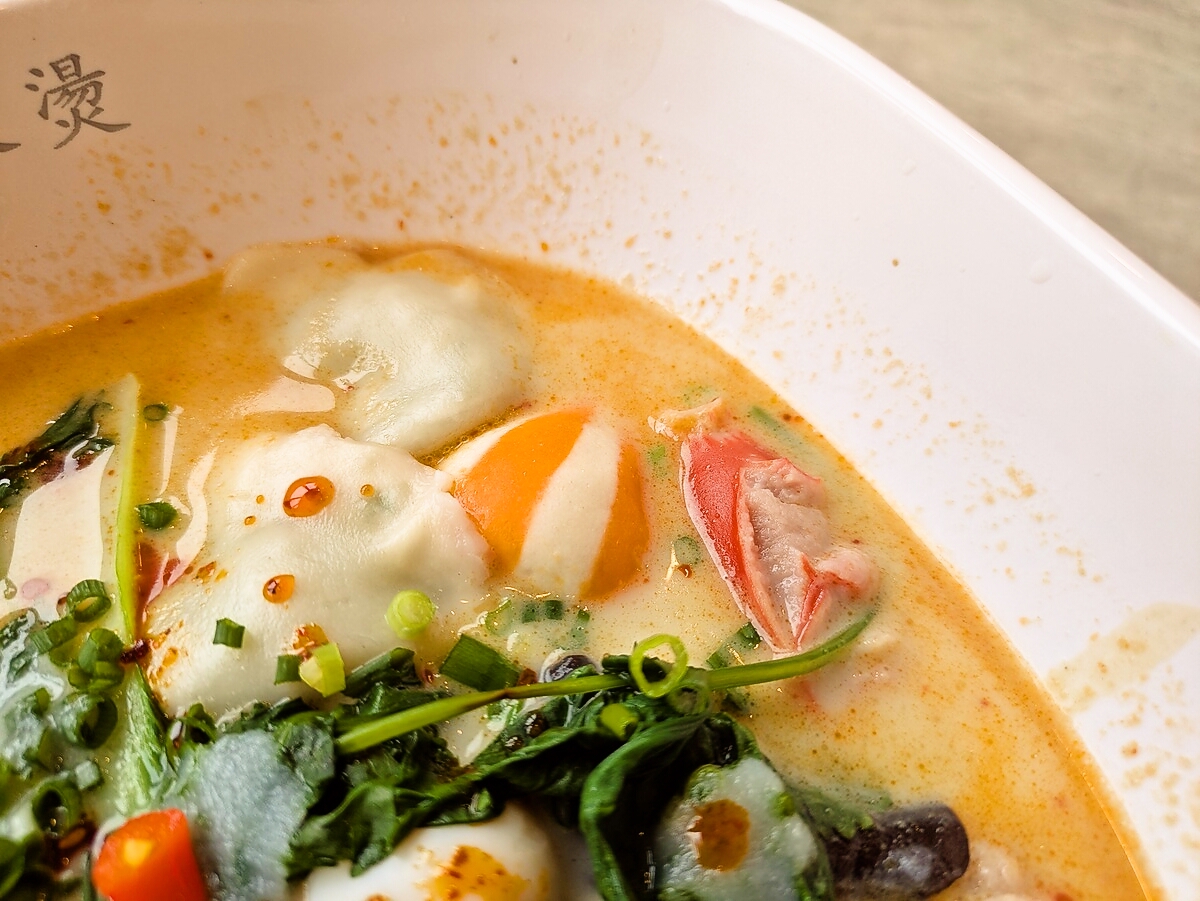 赤みがかったスープに浮かぶ具材のコントラストが食欲をそそる