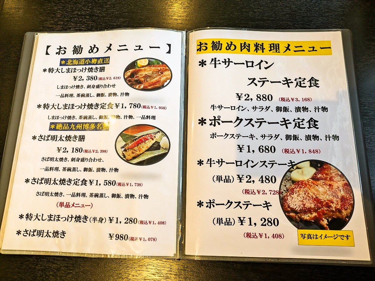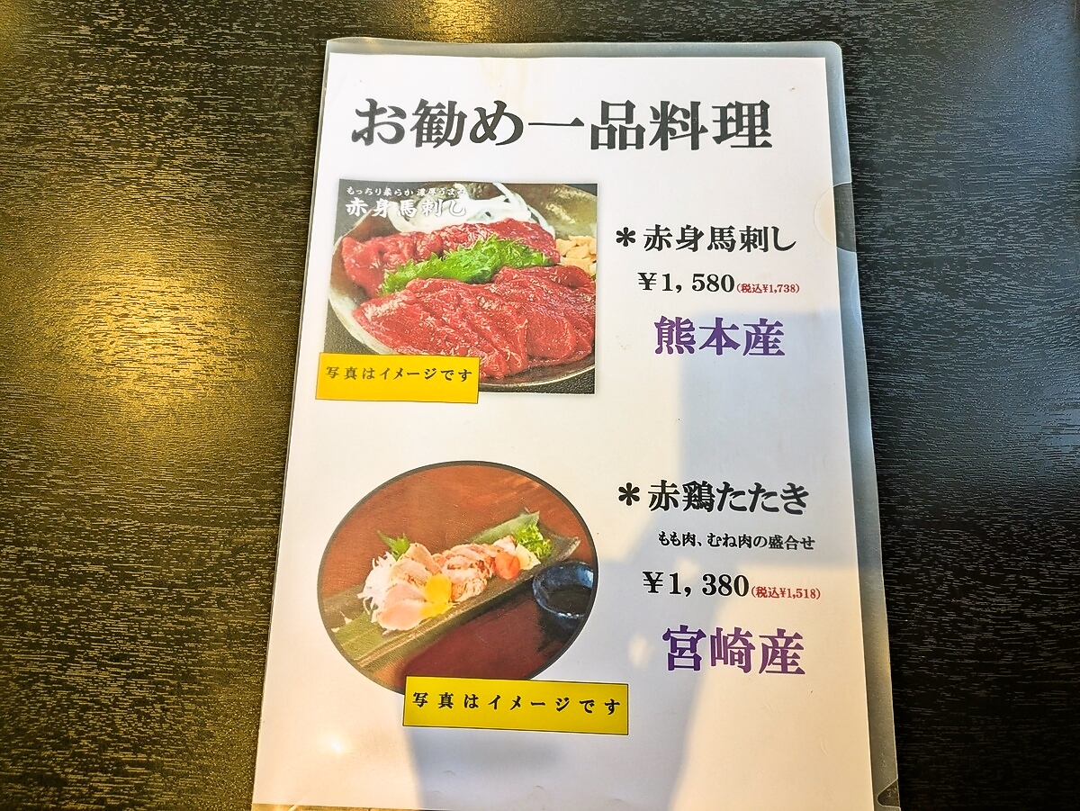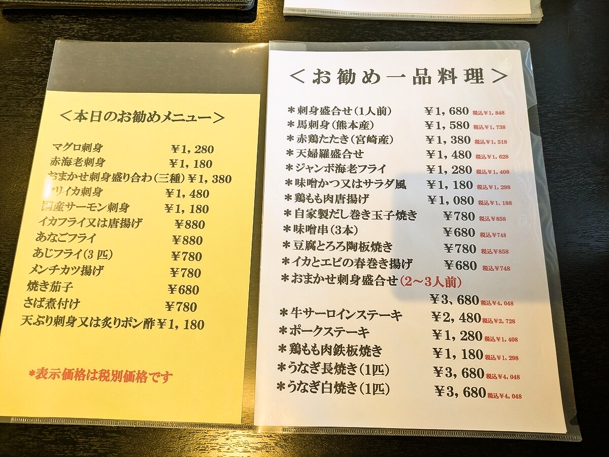 本日のオススメメニューとお勧め一品料理