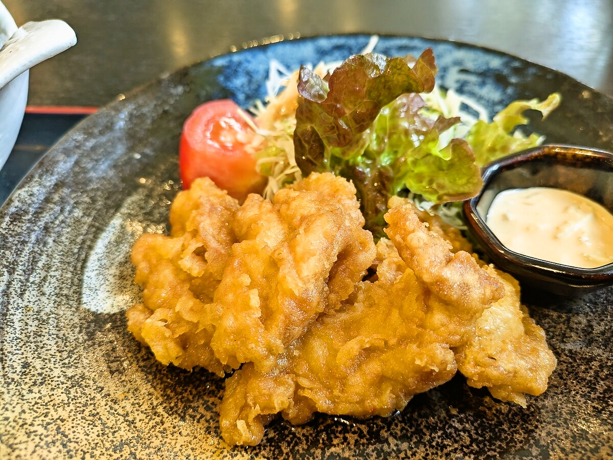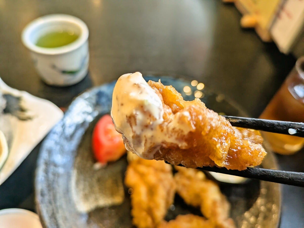 とり天はカリッと揚げられた鶏肉が、外側は軽く、内側はふっくら