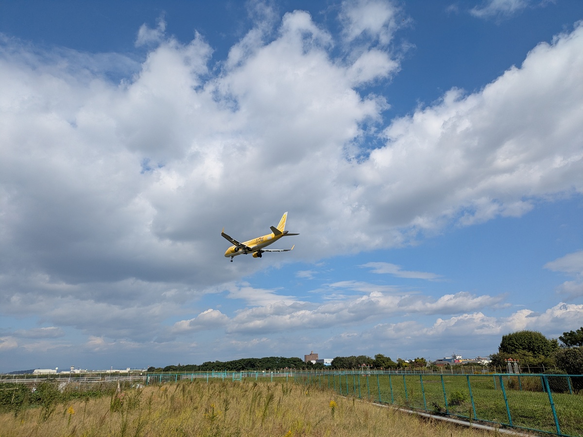 ほぼ真上を航空自衛隊の飛行機が轟音を立てながら着陸態勢に入る