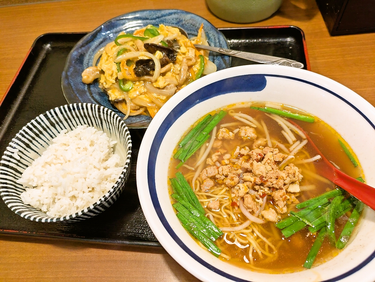 豚肉と玉子炒めの豚肉は薄切りで柔らかく、玉子がふんわりと絡んで優しい口当たり