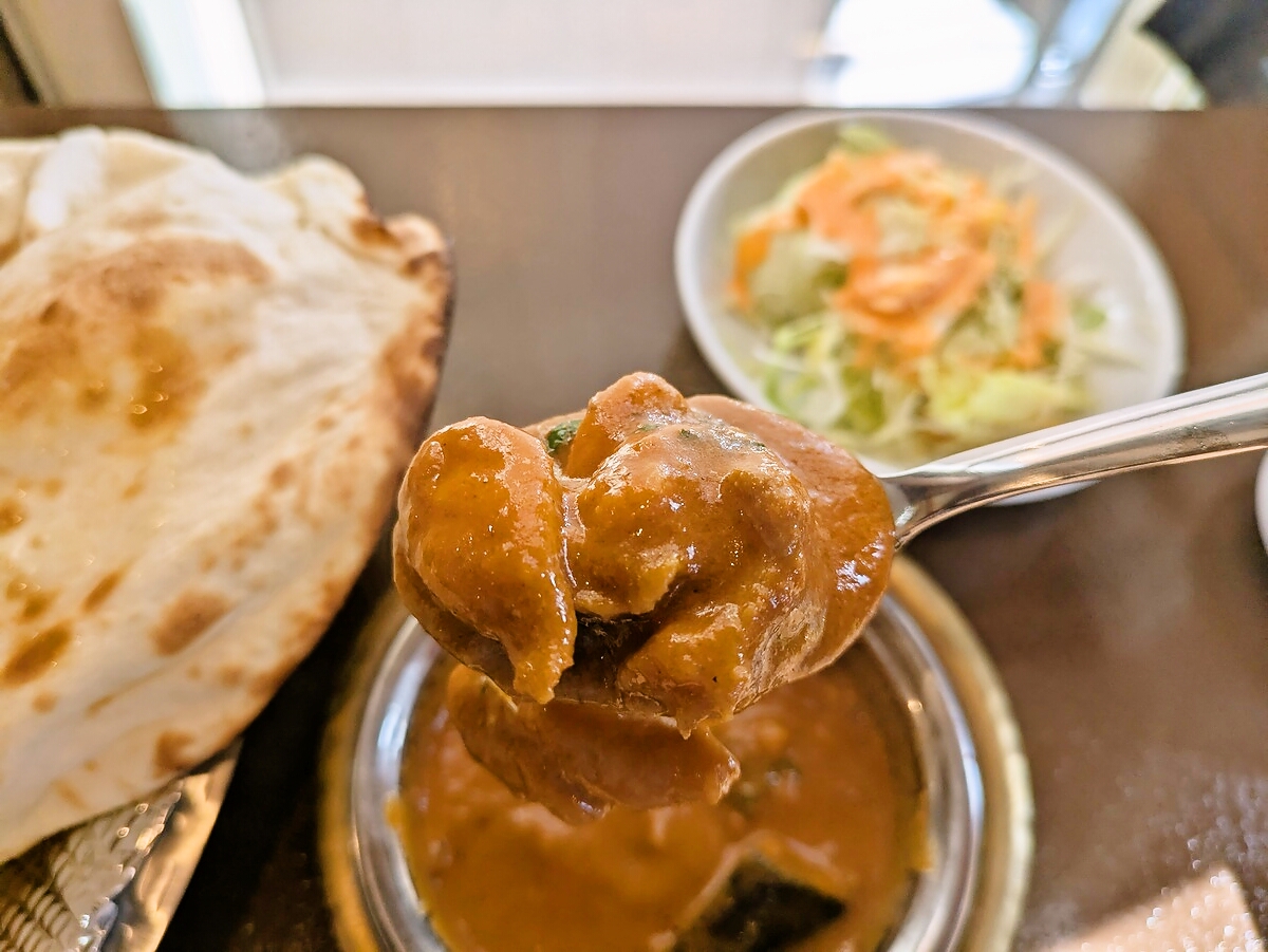 チキンの旨味が染み出してマイルドながらもピリッとした辛さがクセになる味わい