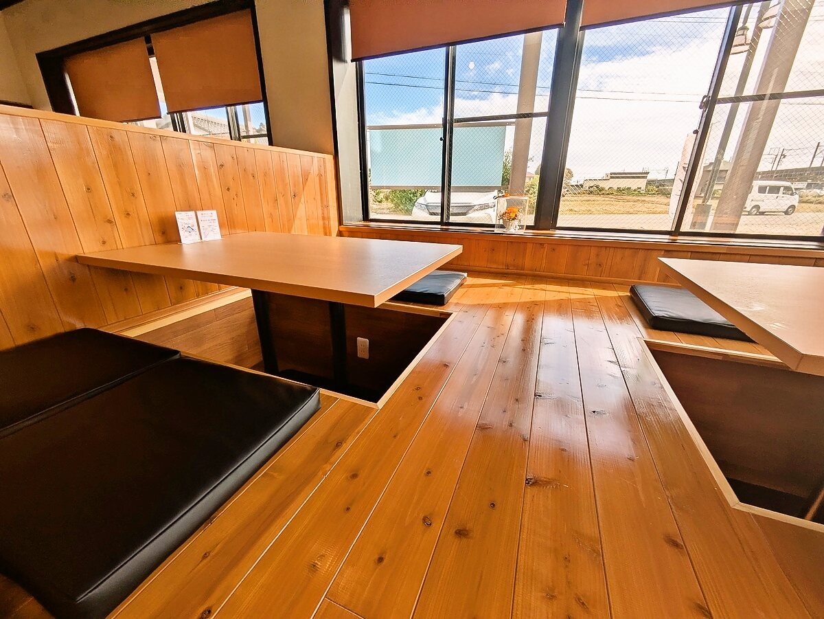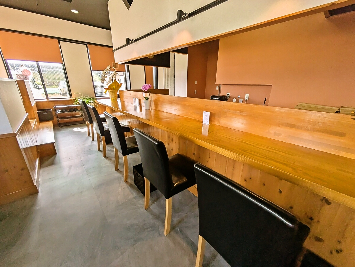 店内はカウンターとテーブル、座敷を合わせて23席のこぢんまりとした空間で、落ち着いた雰囲気