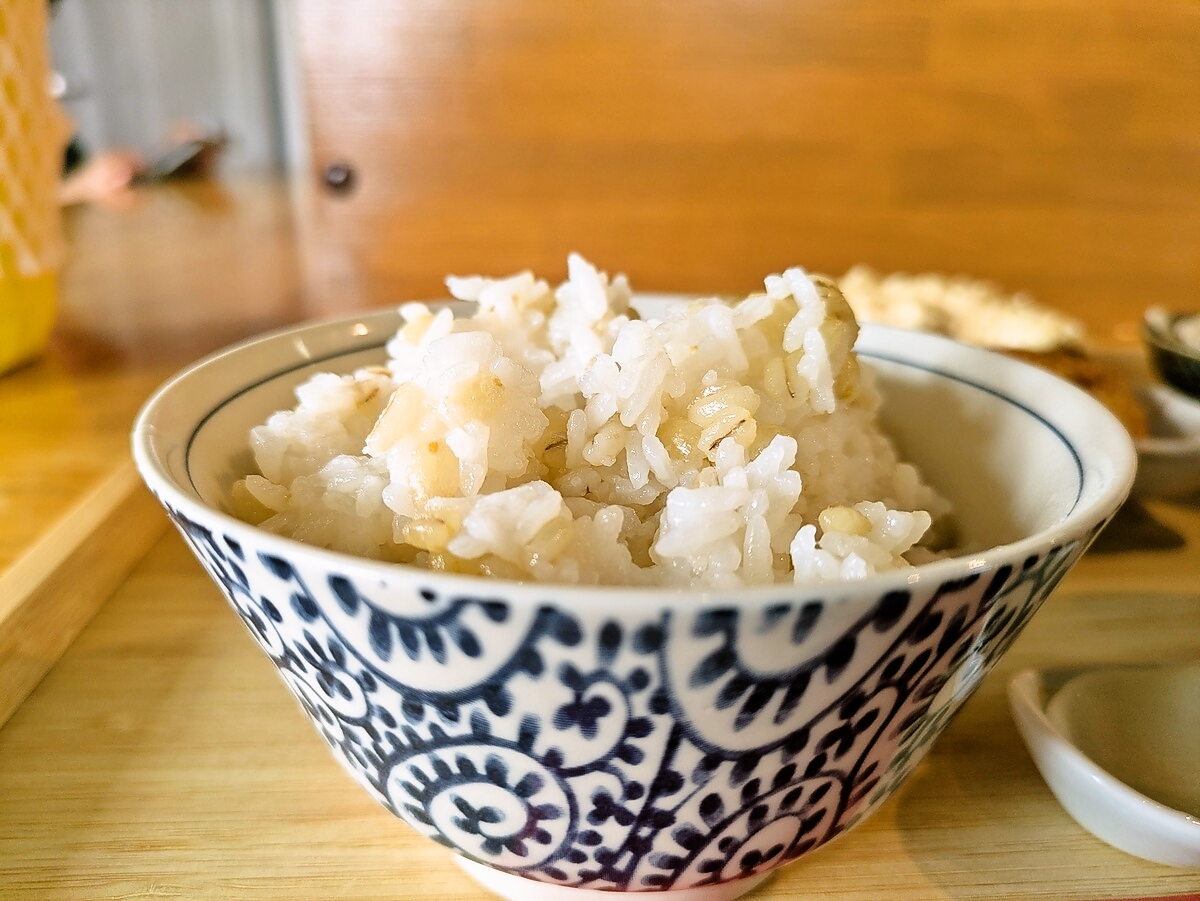 もち麦ごはんはプチプチとした食感が楽しく、食物繊維たっぷりでヘルシー志向にぴったり