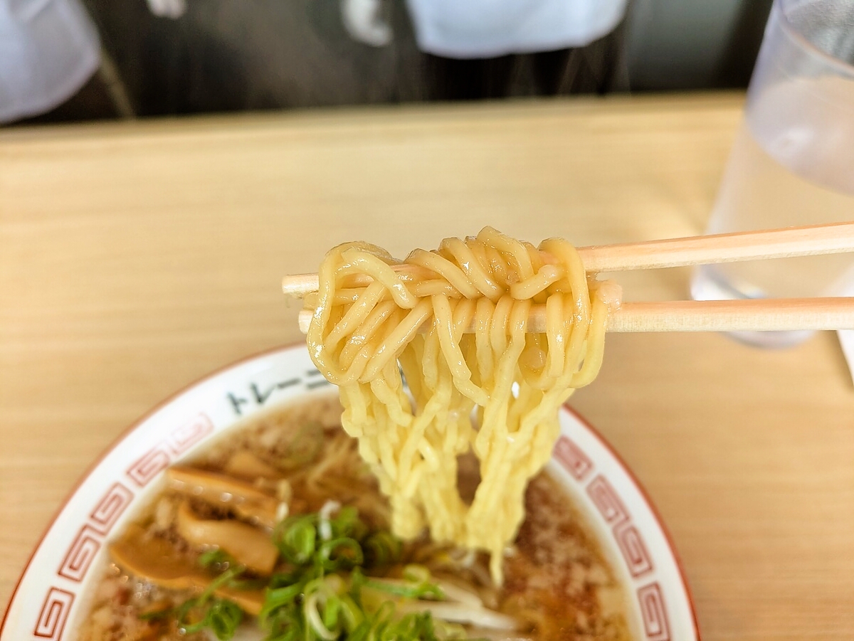 麺はやや細めのストレート麺で、柔らかすぎず固すぎず、スープとの相性も抜群