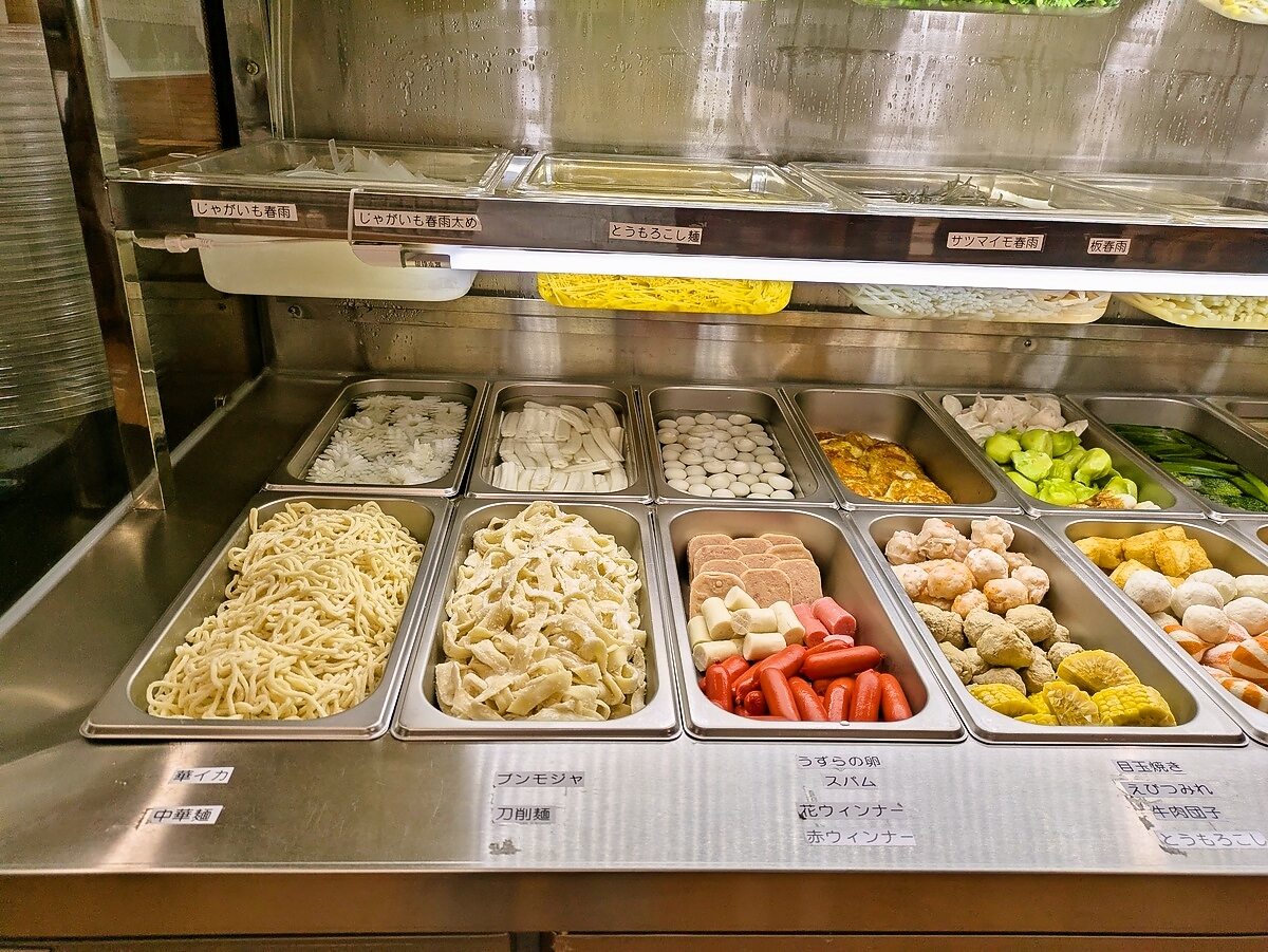 量り売りのスタイルが採用されており、好みの具材を自分で選んでグラム単位で料金を計算するシステムが魅力