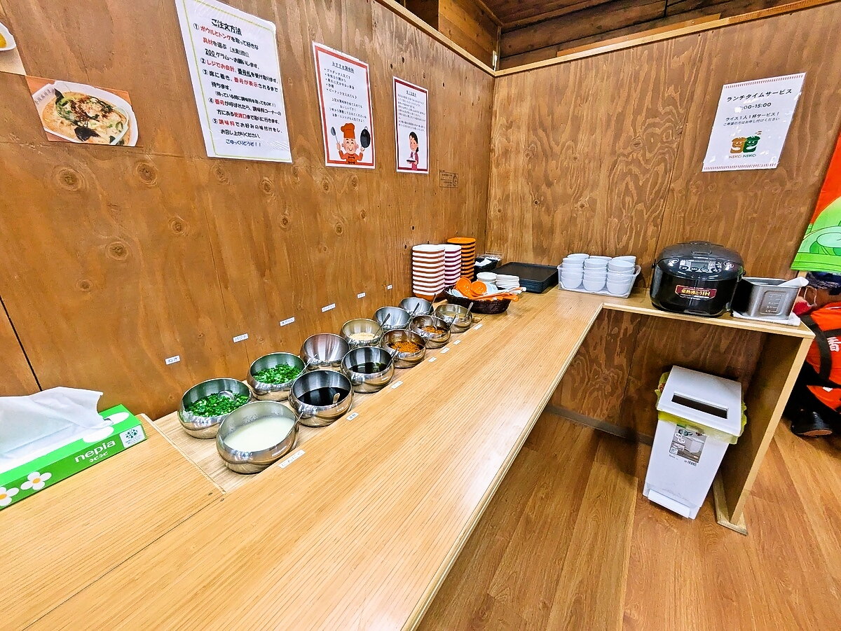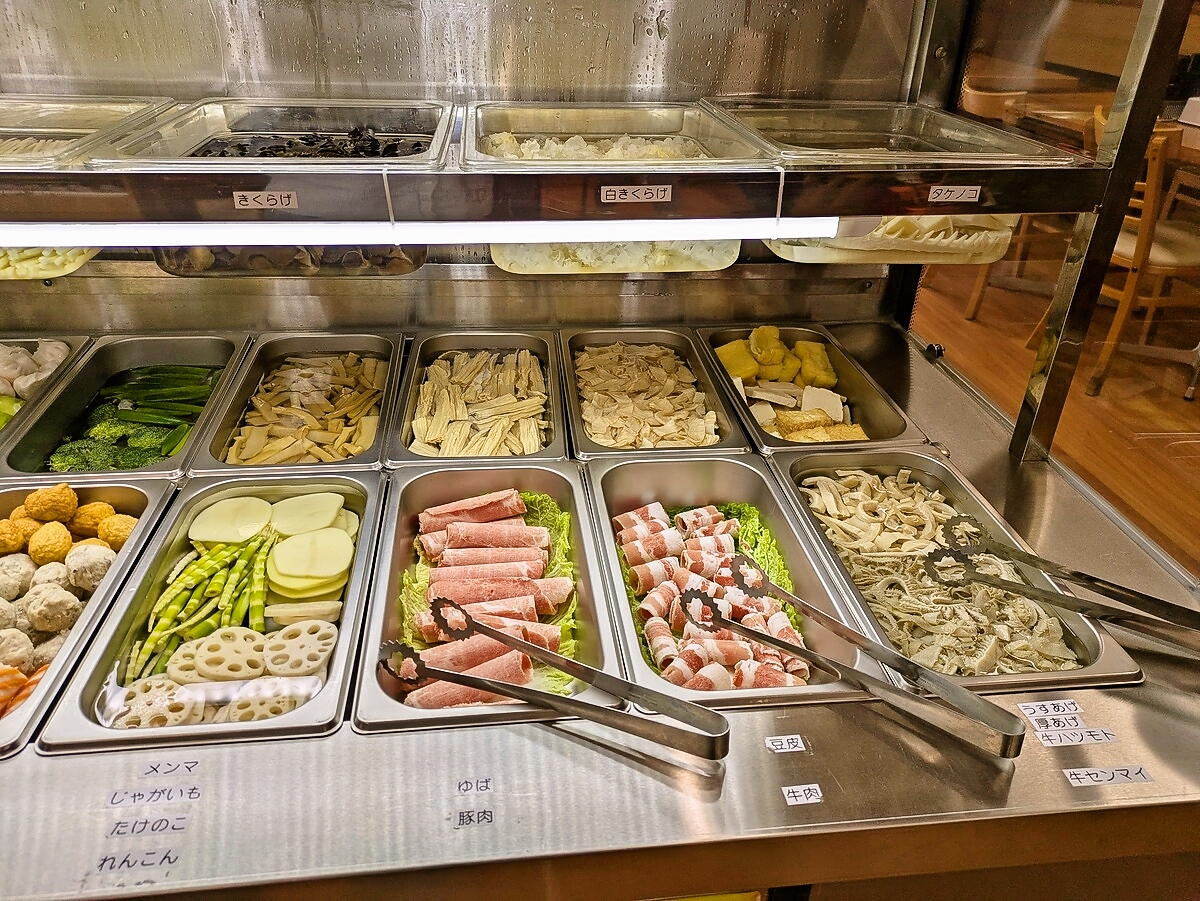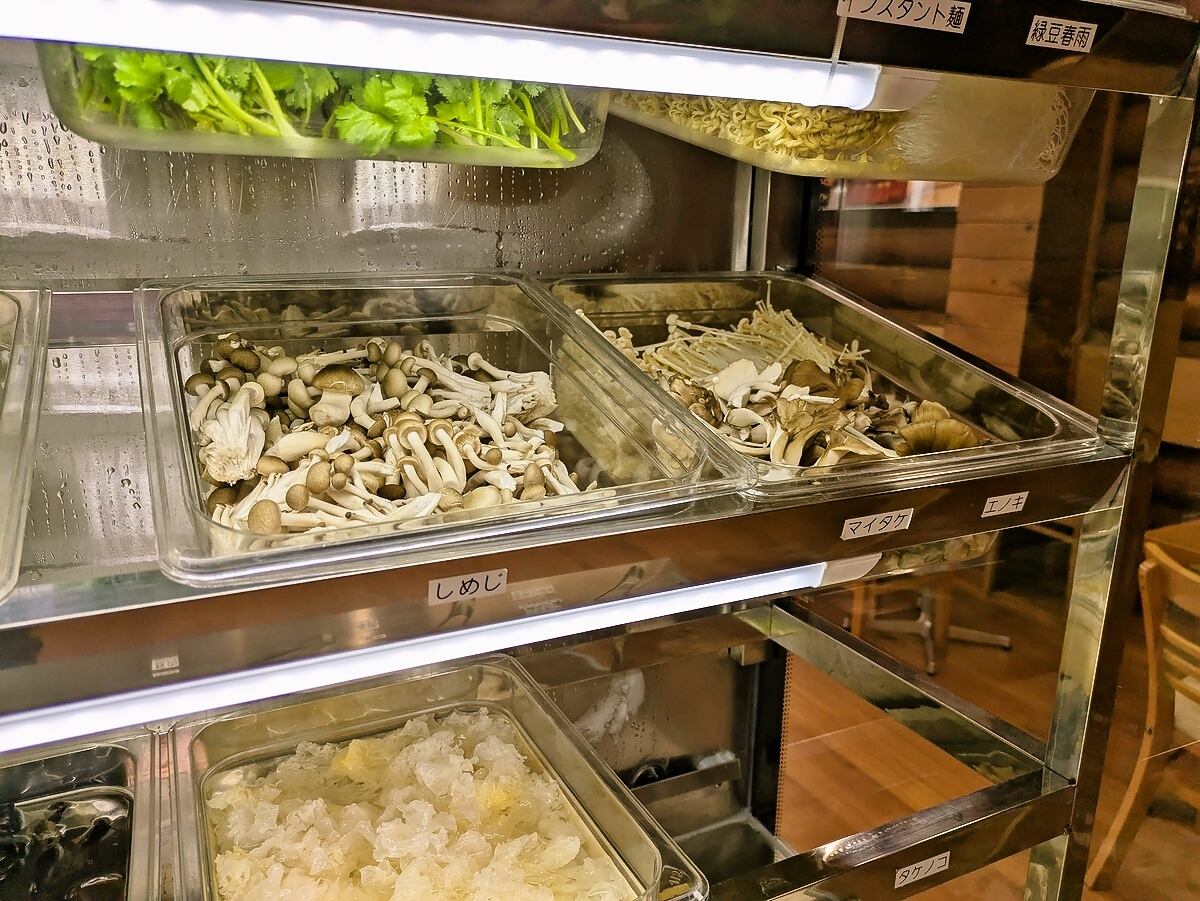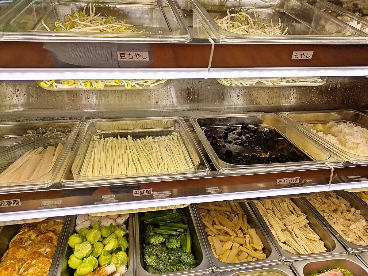 入店し席を確保した後に、ボウルとトングを手に取り、好みの具材を選ぶ