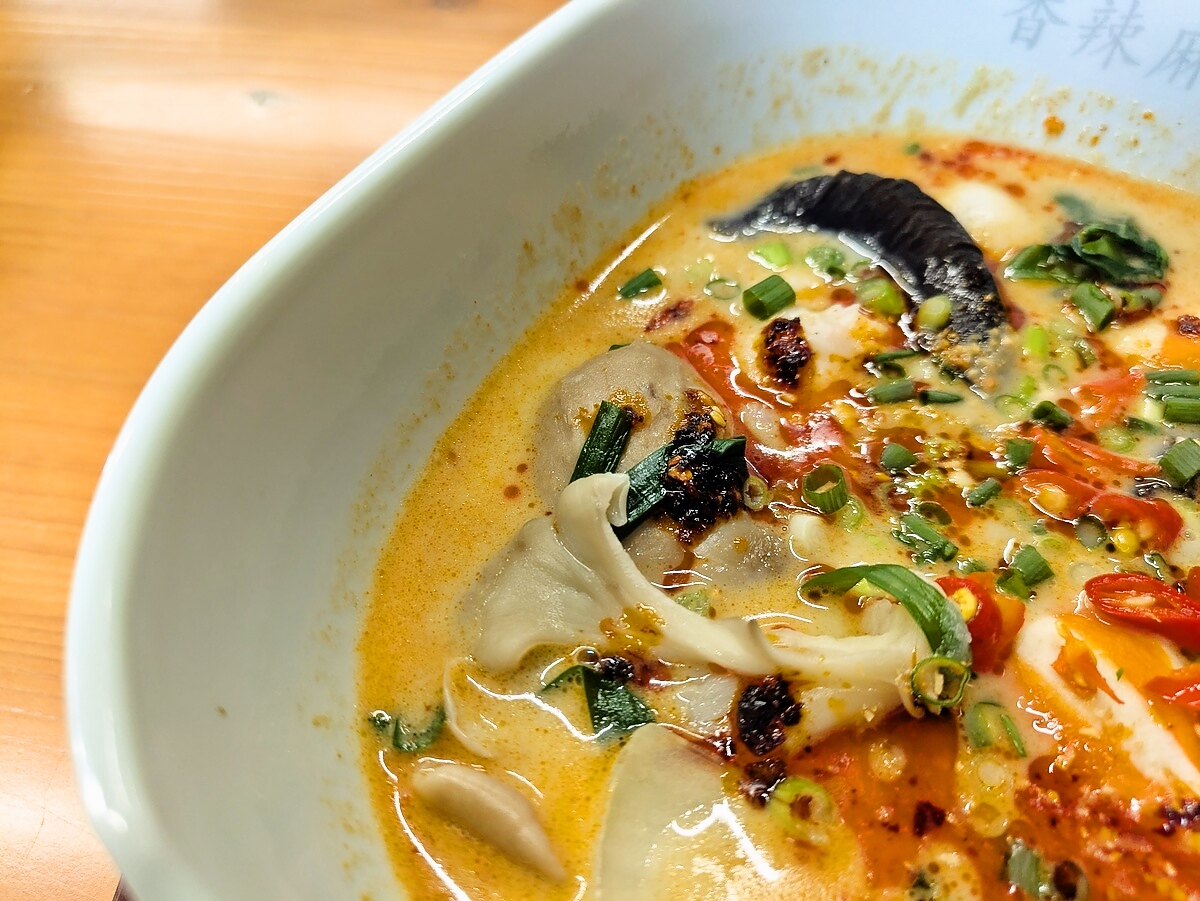 スープのベースは香辛料の効いたコクのあるスープで、辛さと痺れのバランスが絶妙