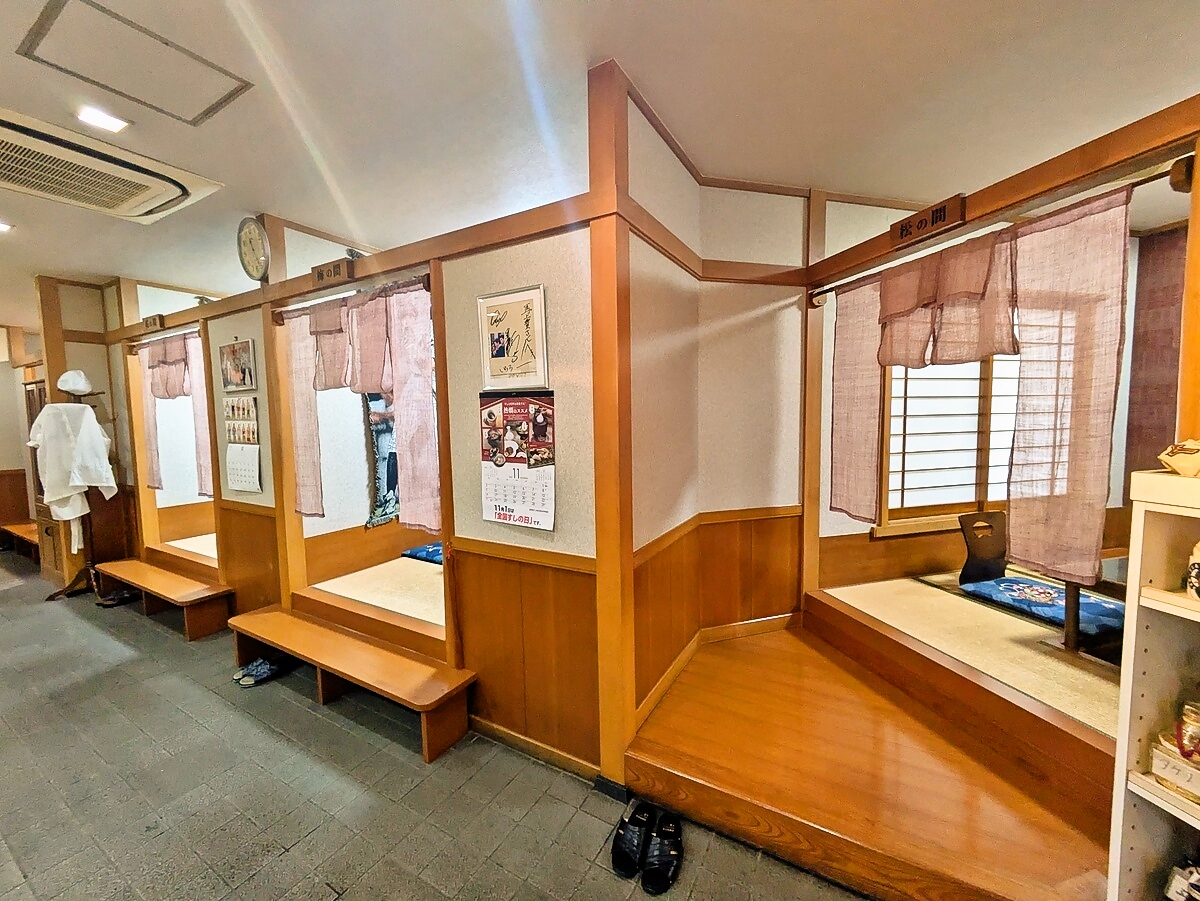 店内はカウンター席と、掘りごたつ風席(全室個室)があり落ち着いた雰囲気