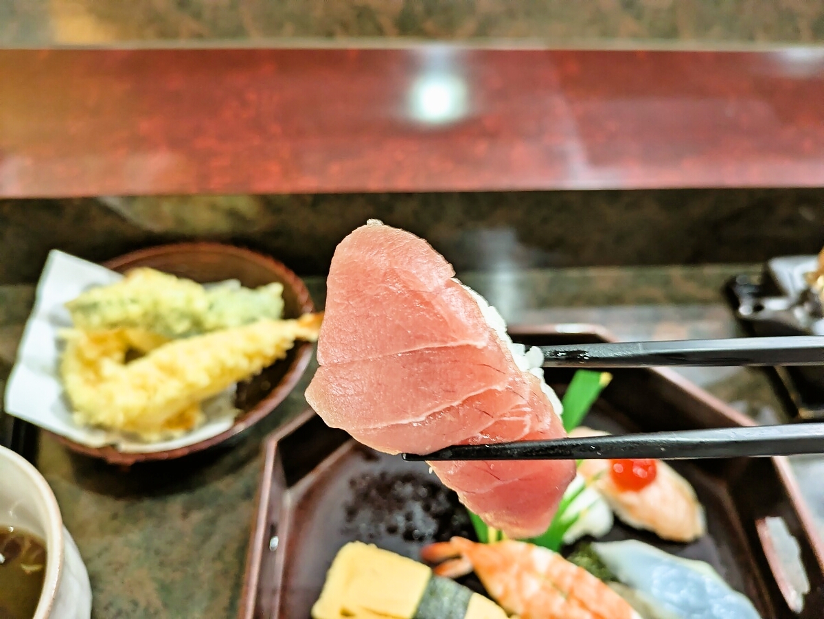 マグロはしっとりと舌に吸い付くような食感で、旨みがじわっと広がる王道の味