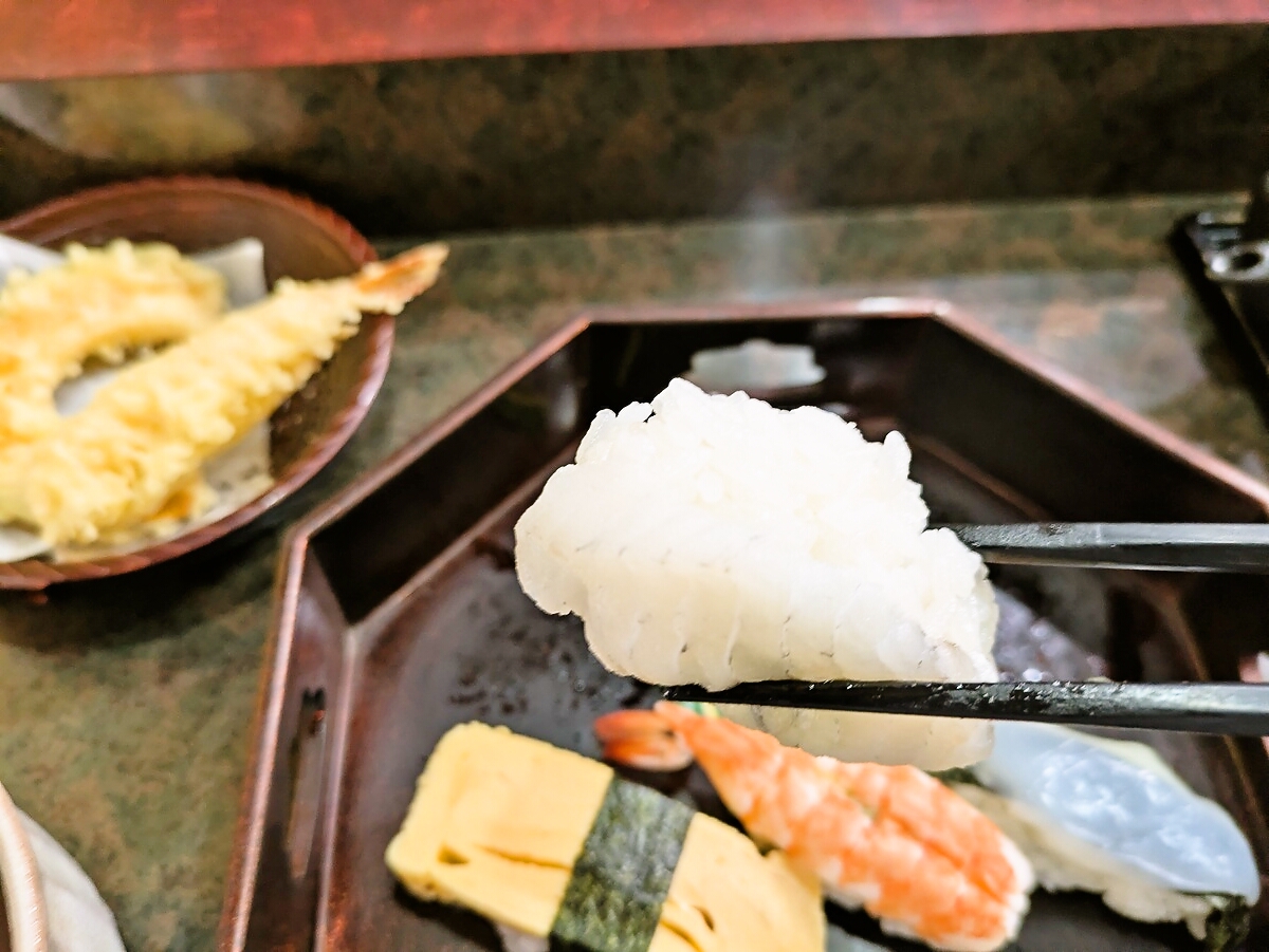 鯛は淡泊ながらも旨みが長く続き、シャリとのバランスが美しく仕上げられている