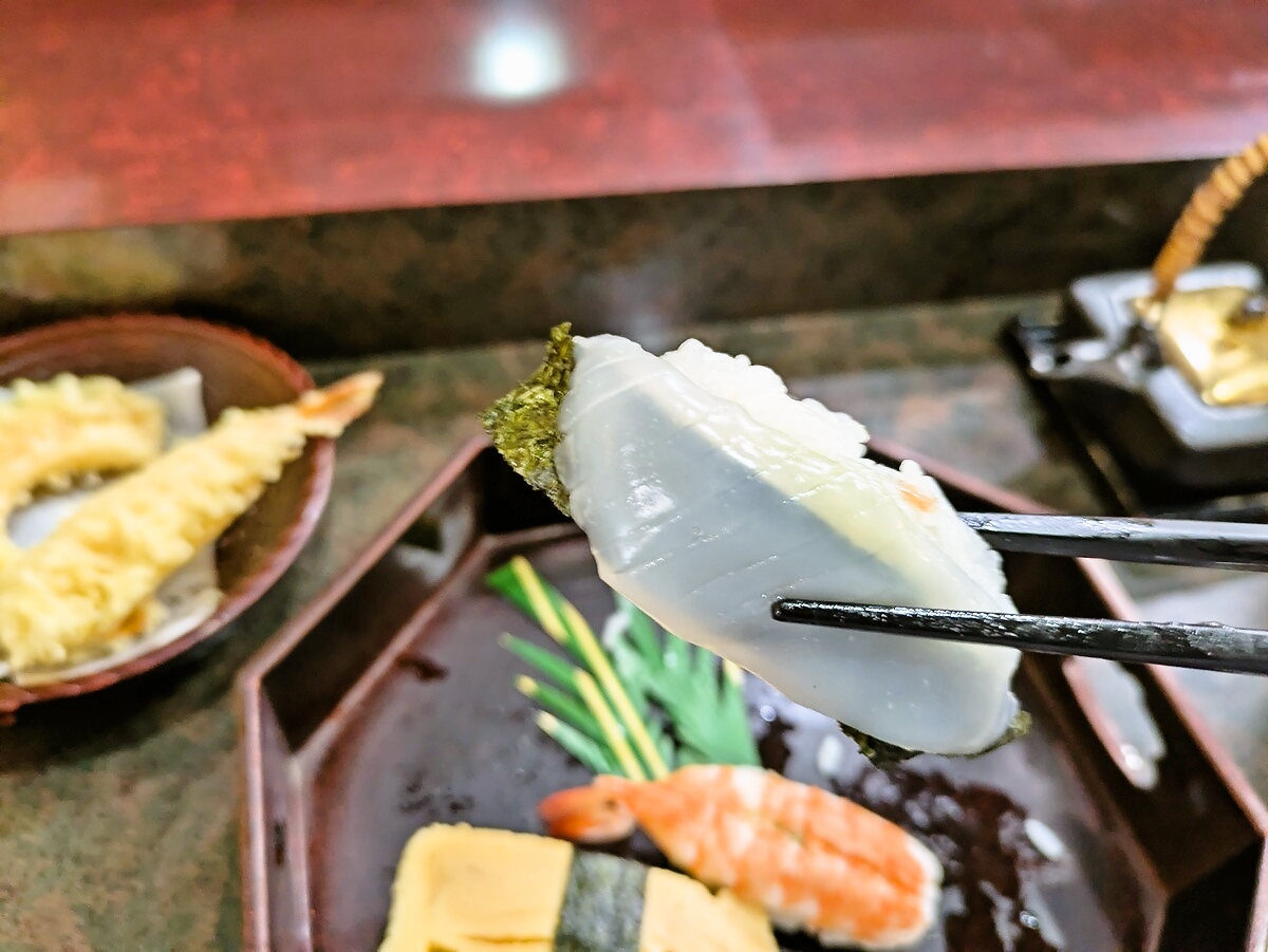 イカはねっとりとした粘りが心地よく、噛むほどに甘みが出るタイプ