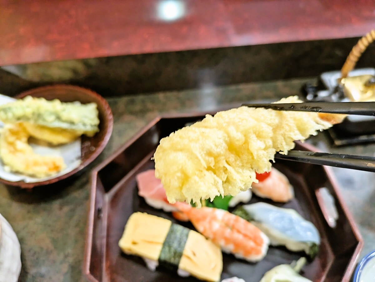 天ぷらは衣薄めで軽さが印象的