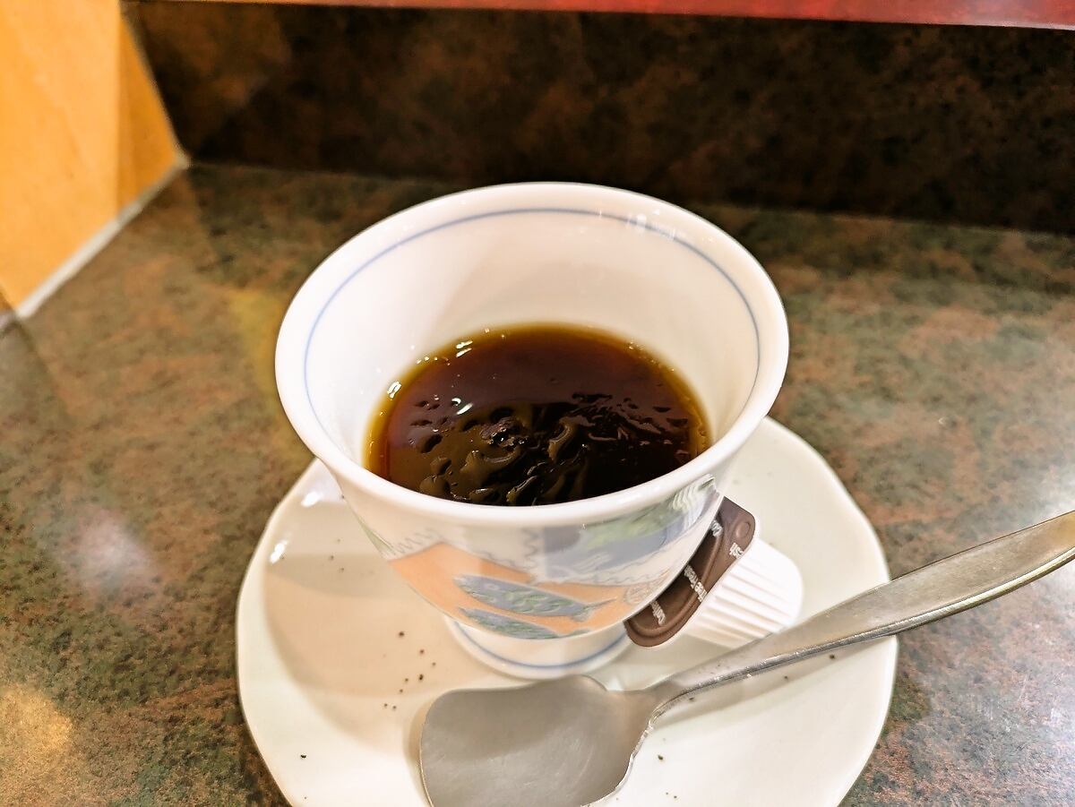 締めのコーヒーゼリーは、小さなカップながら満足度のあるデザート