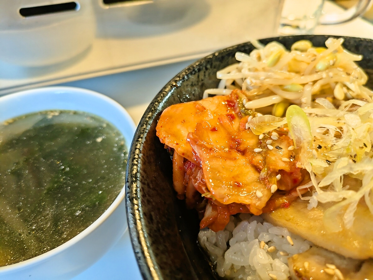 わかめスープはあっさりとした出汁が効いていて、丼の合間に飲むと口の中をリセットしてくれる