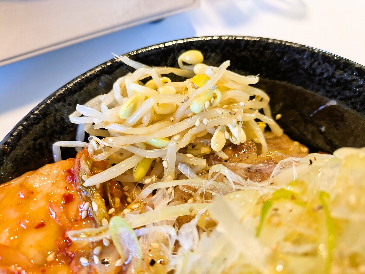 もやしナムルはシャキシャキとした食感で、全体を軽やかにまとめている