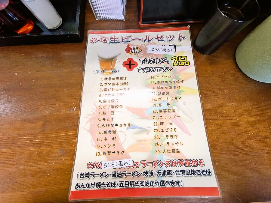 ラーメンセット「台湾ラーメン+中華飯」をオーダー
