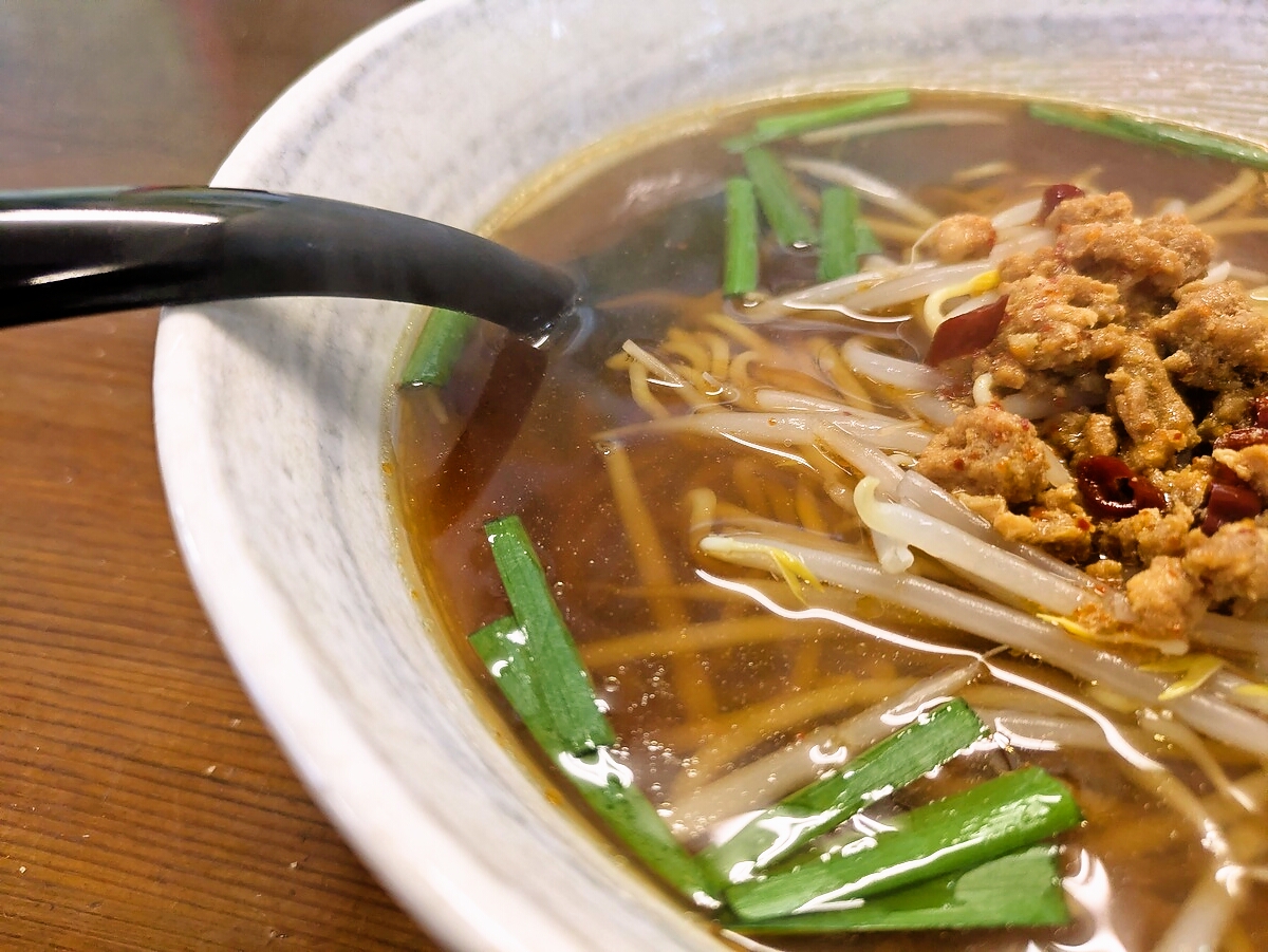 表面にはラー油の赤い層が浮かび、見た目にも辛さが伝わってくる