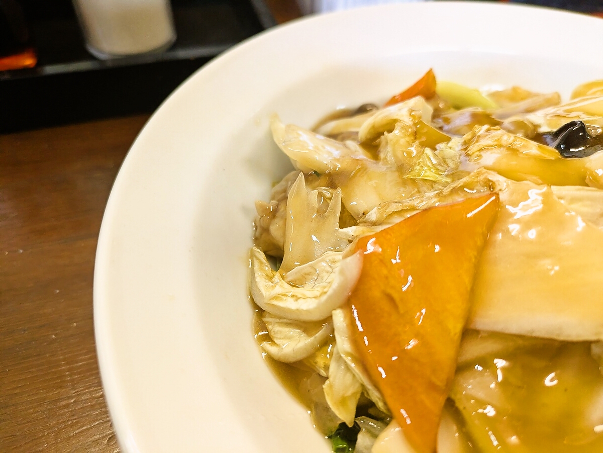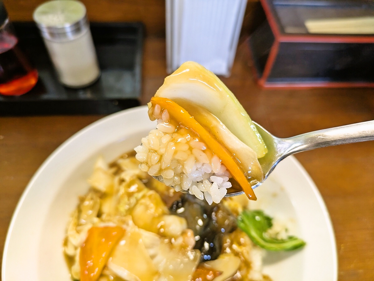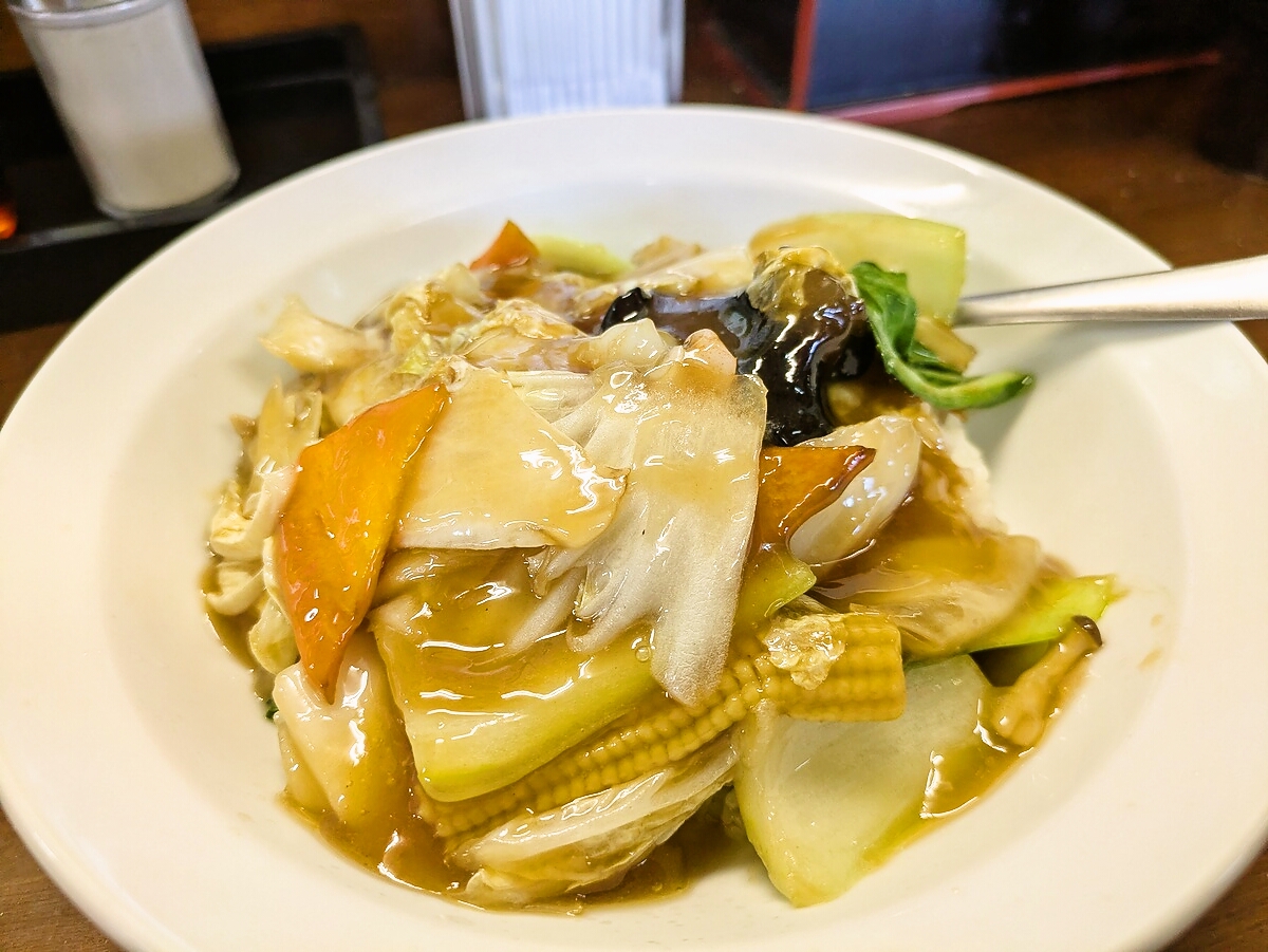 野菜はシャキシャキ感を残しつつ、餡の旨味が染み込んでおり、ボリュームだけでなく栄養バランスも良好