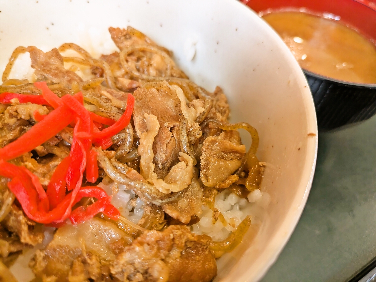 豚丼の甘辛い香りが食欲をそそる