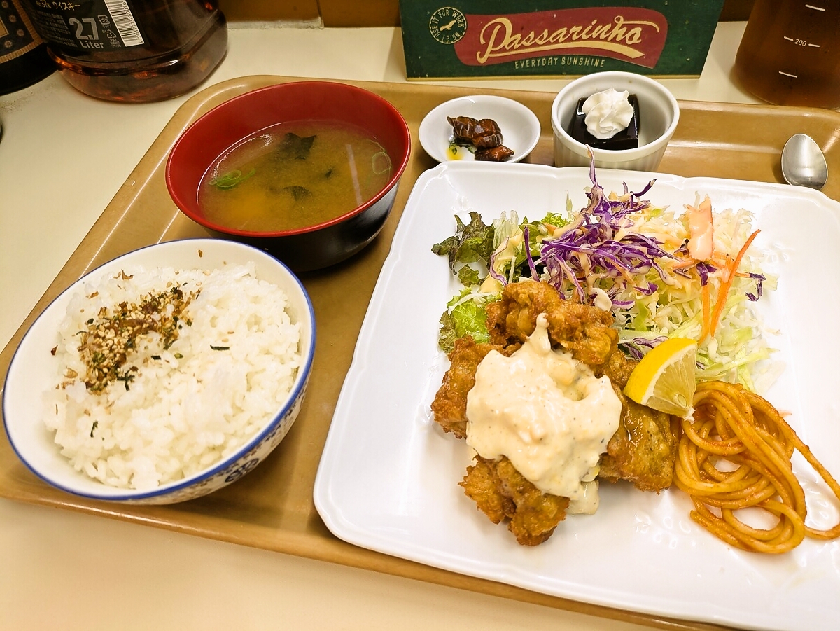 日替りランチ「チキンカラアゲ(800円)」の配膳