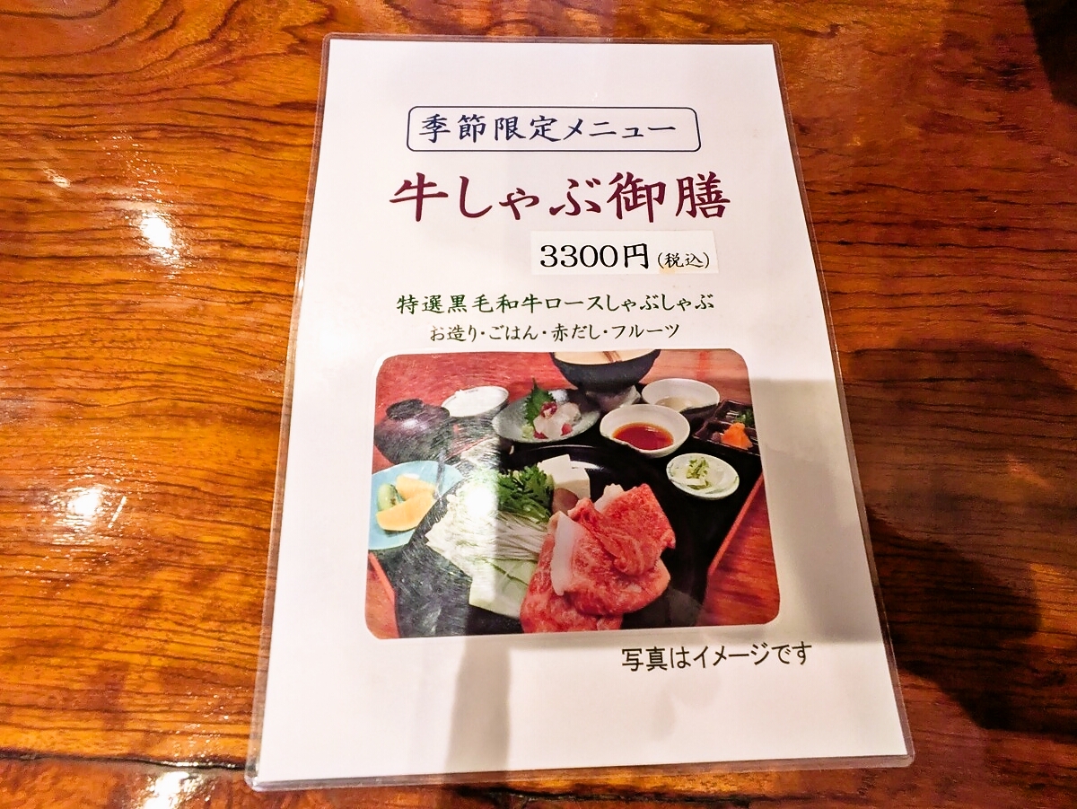 季節限定の牛しゃぶ御膳