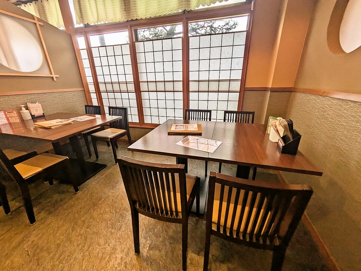 落ち着いた和の空間が広がり、ゆったりとした配置で居心地が良い