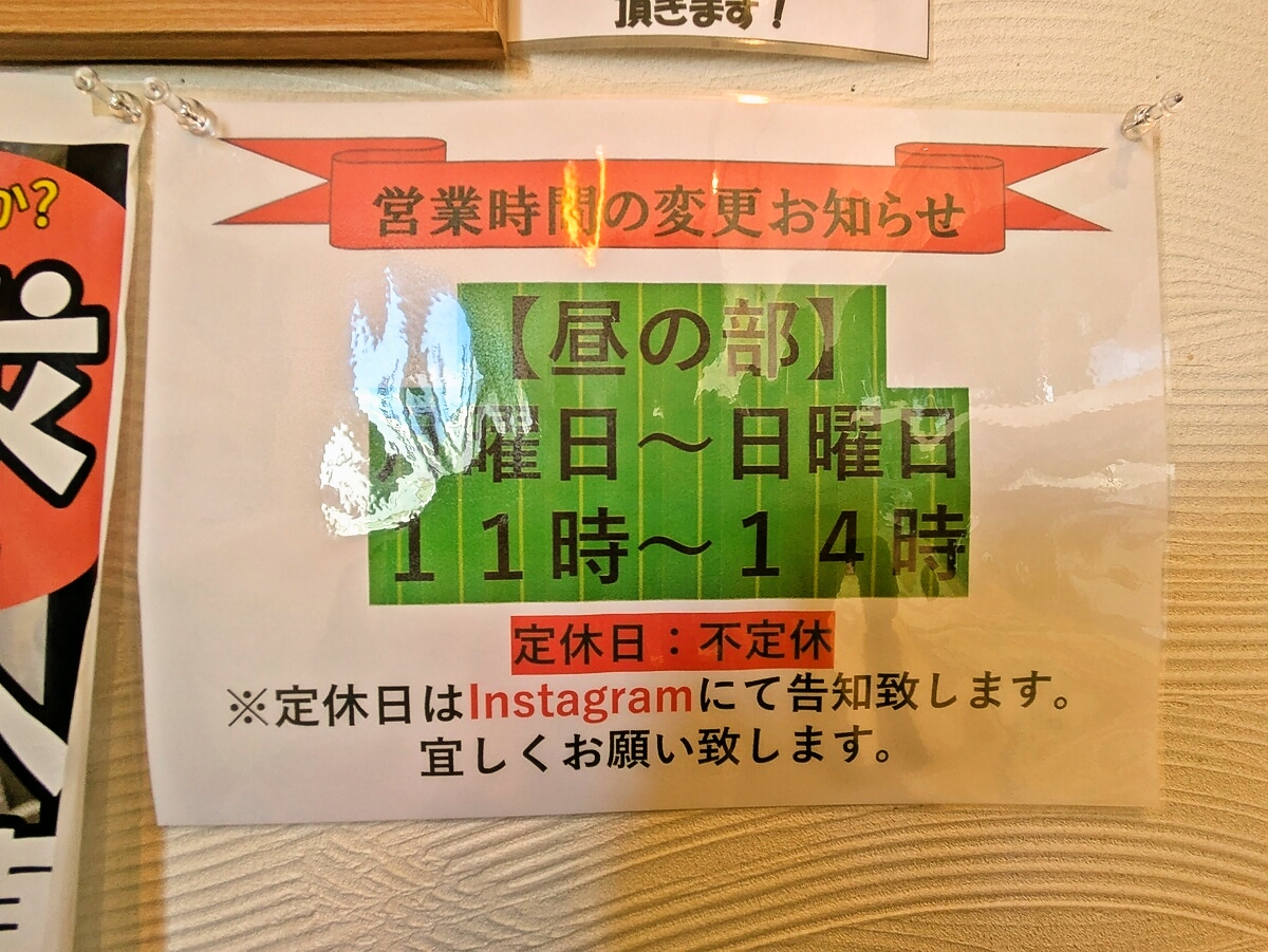 11月より営業時間が変更された