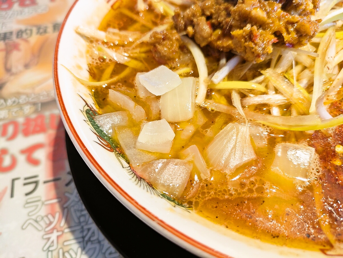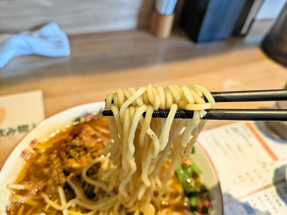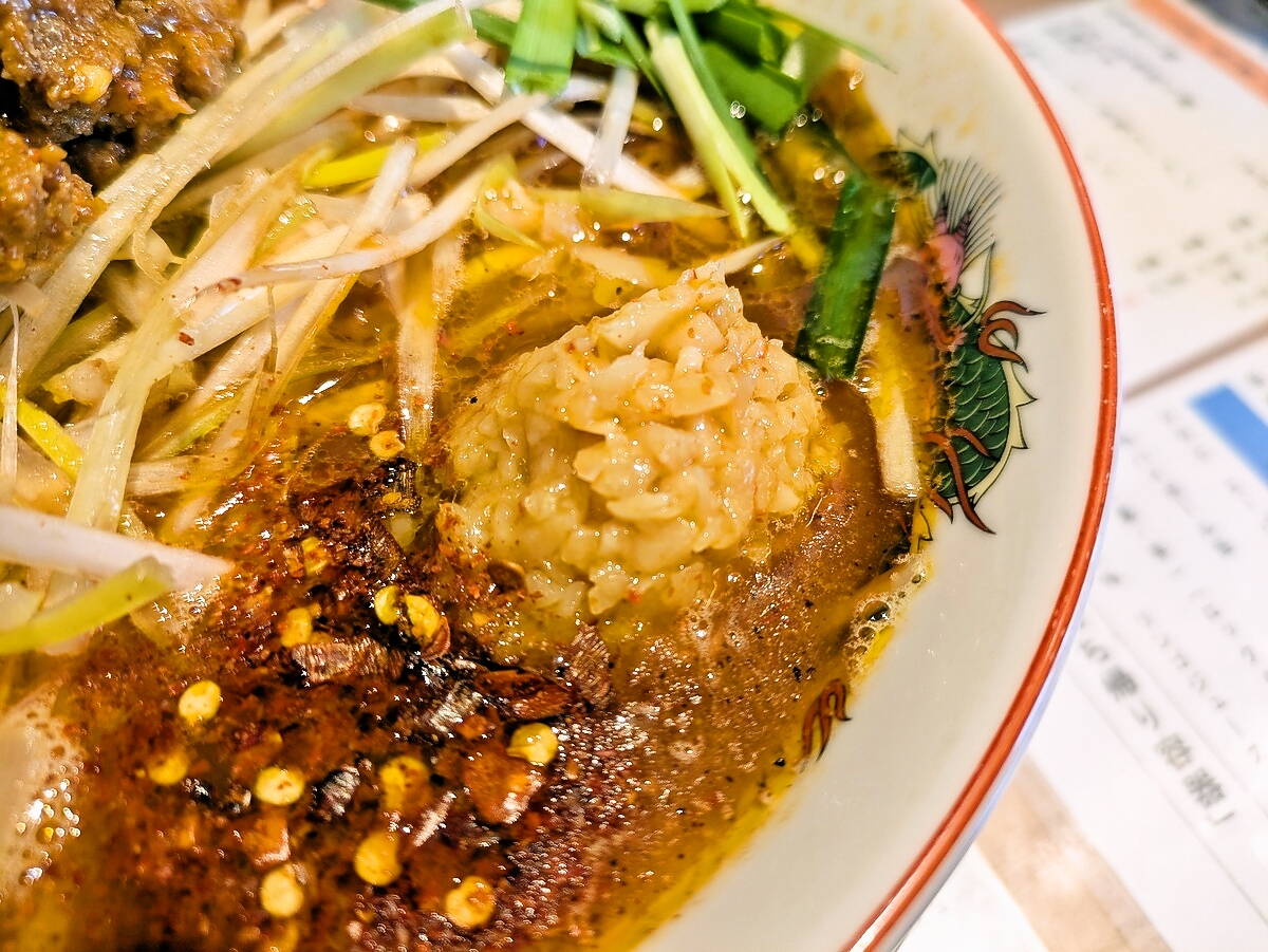 豚骨醤油ベースならではの濃厚な旨味が、辛さとシビれを単なる罰ゲームで終わらせず、高いレベルで調和させている