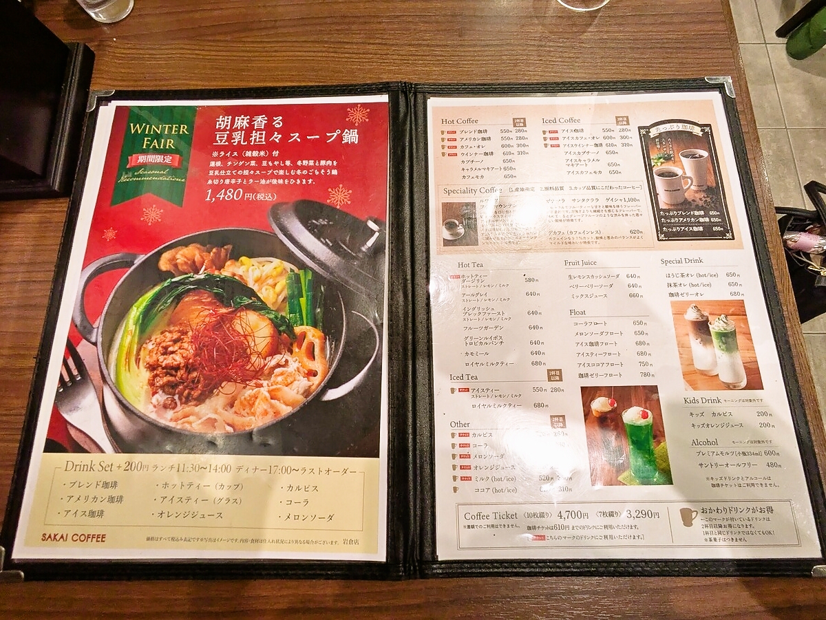グランドメニューはさかい珈琲の【メニュー】を確認願う(PDF)