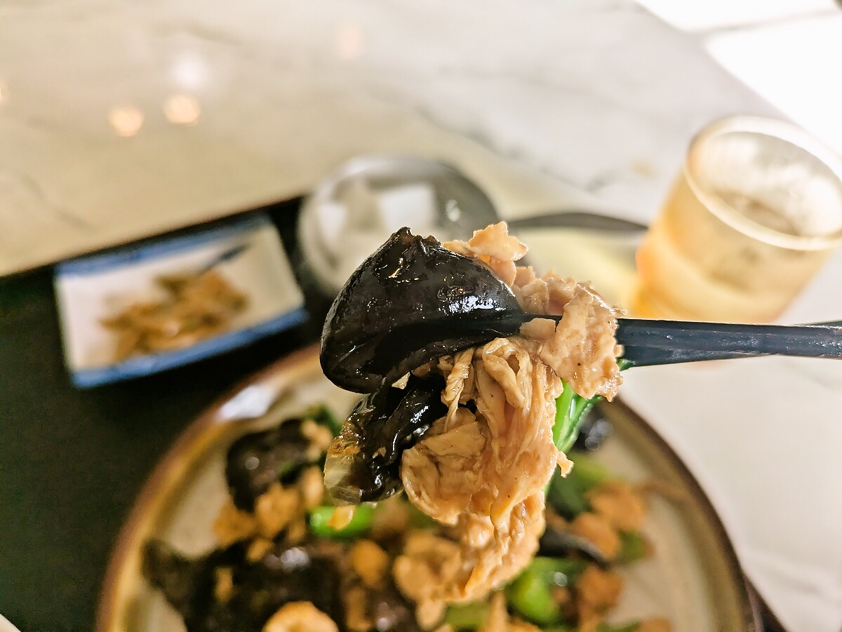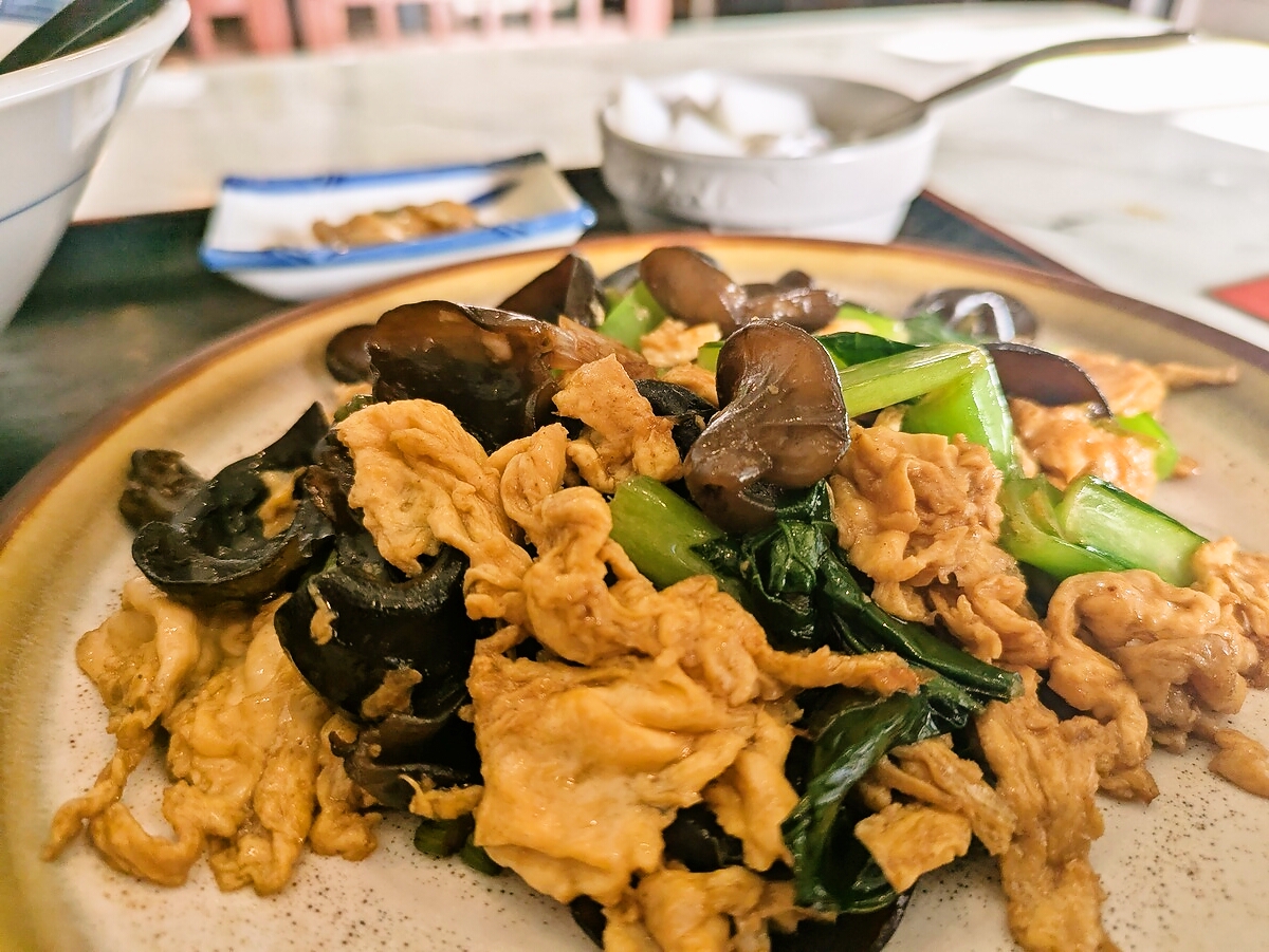 キクラゲと玉子炒めは、プリプリとしたキクラゲの独特な食感がアクセントになり、ふわふわの玉子が優しく包み込むように炒められている