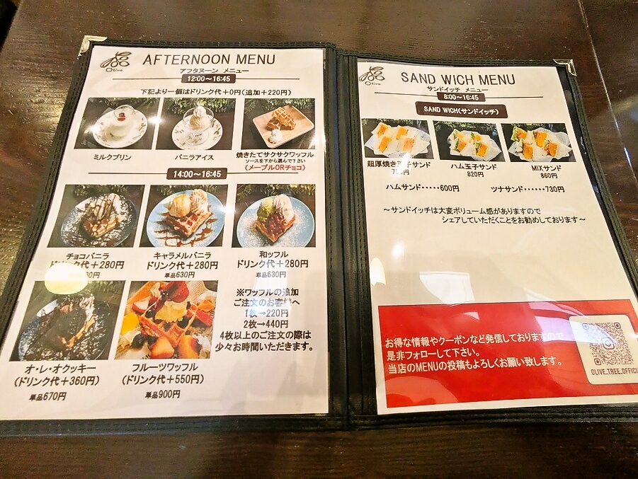 12時からのアフタヌーンメニュー1日中OKなサンドイッチメニュー