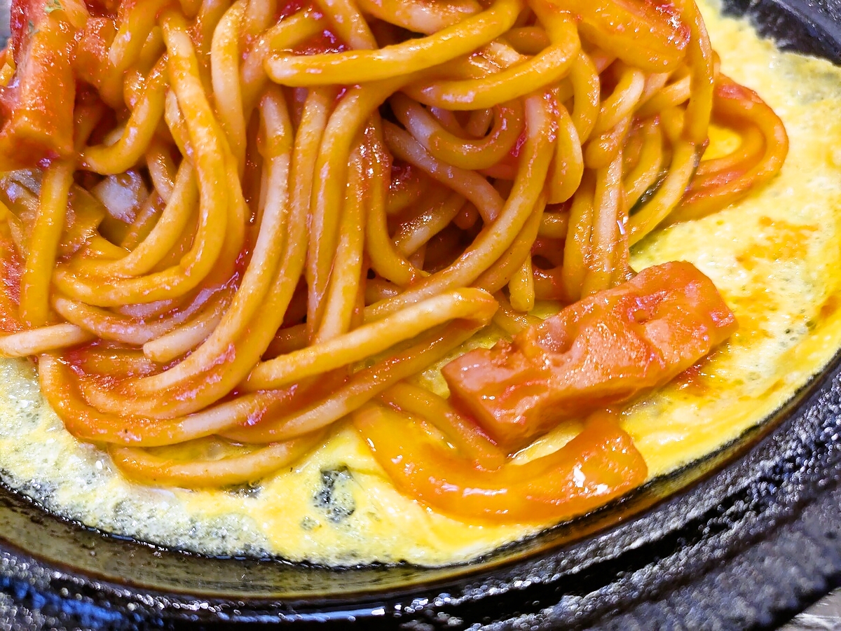 甘酸っぱいケチャップの風味がどこか懐かしく、子供の頃に食べたナポリタンを思い出させる味わい