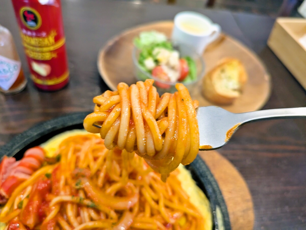 熱厚ナポリタンは「熱々×厚み」のインパクトが強く、喫茶店の定番メニューをアップデートしたような一品