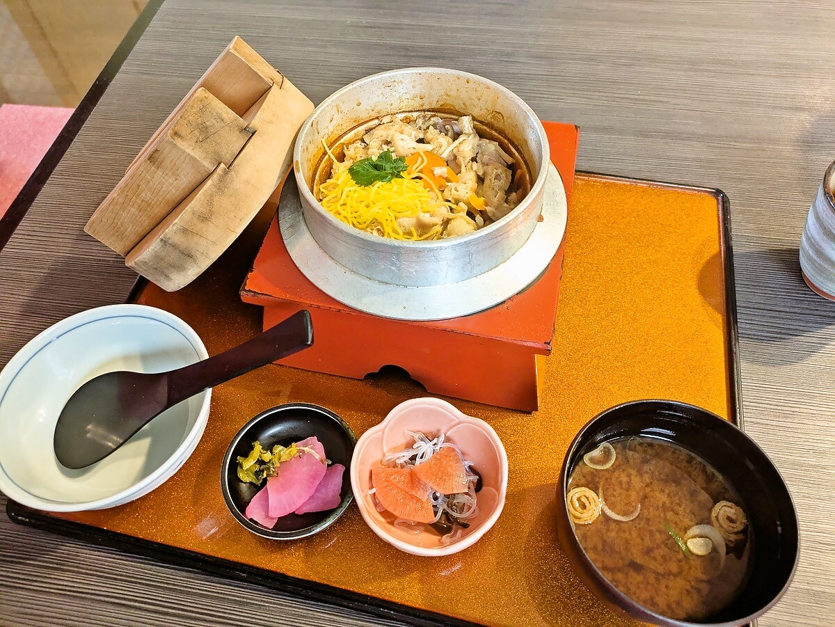「名古屋コーチン釜めし(1,210円)」の配膳