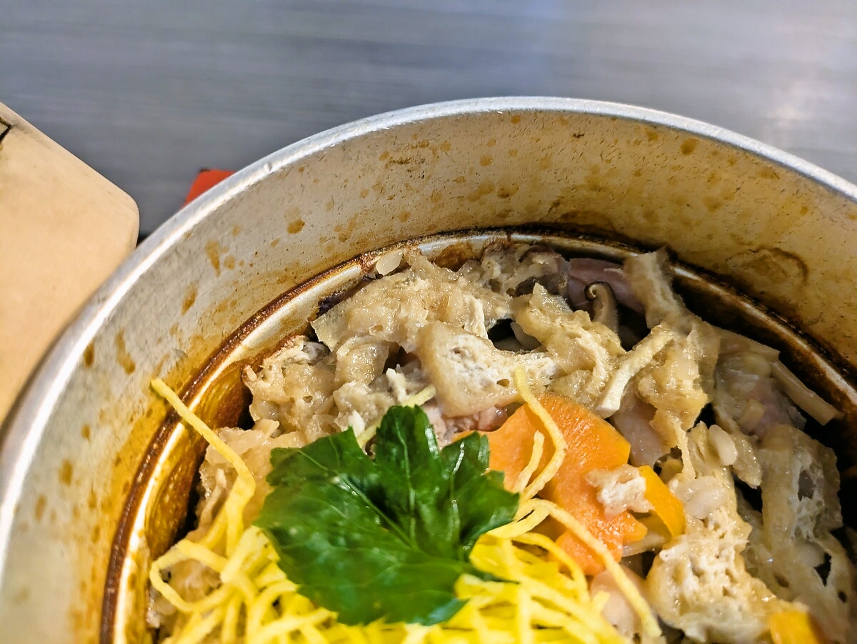 釜めしは火を落としてから蓋を開けるまでのワクワク感が特に楽しい一品