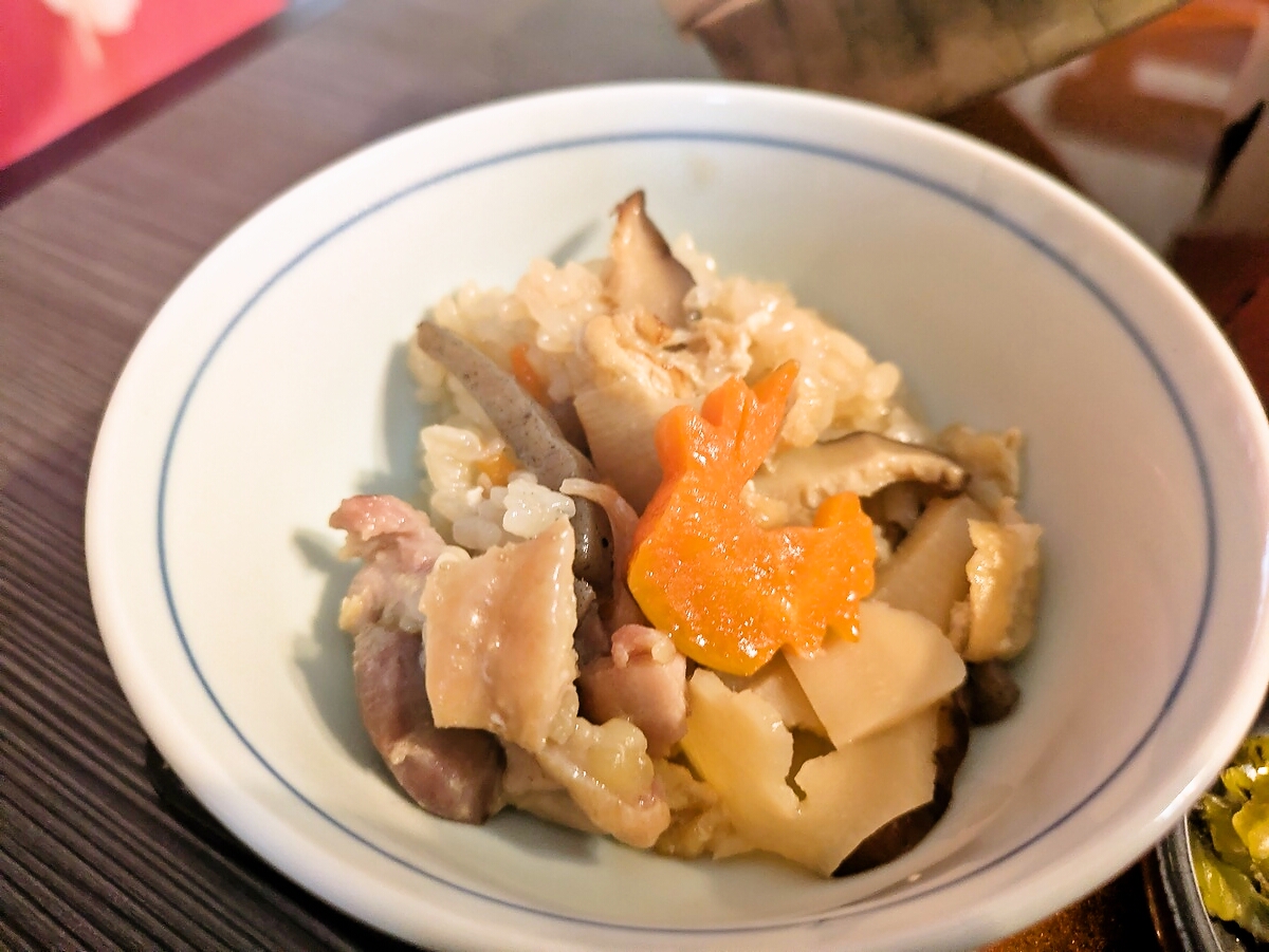 出汁の香りが立つごはんと、地鶏の存在感ある味わいが 口の中で調和する瞬間が最高だ