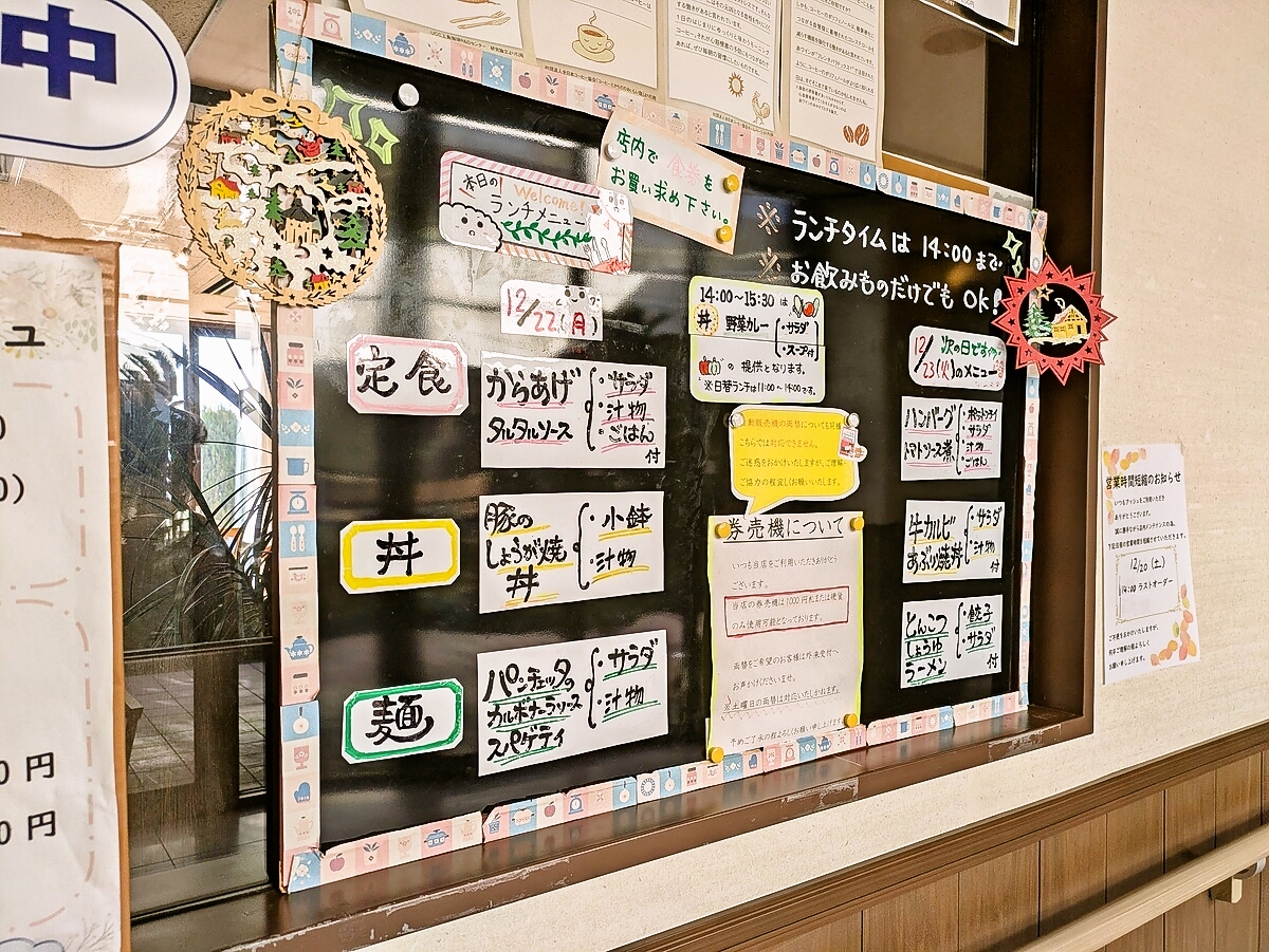 今日(手前)と次の日(奥)のメニューが貼り出されている