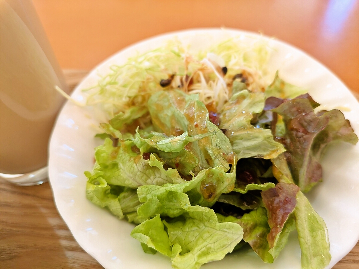 サラダはシンプルながらシャキシャキの野菜が新鮮で、ドレッシングの酸味が食欲をそそる